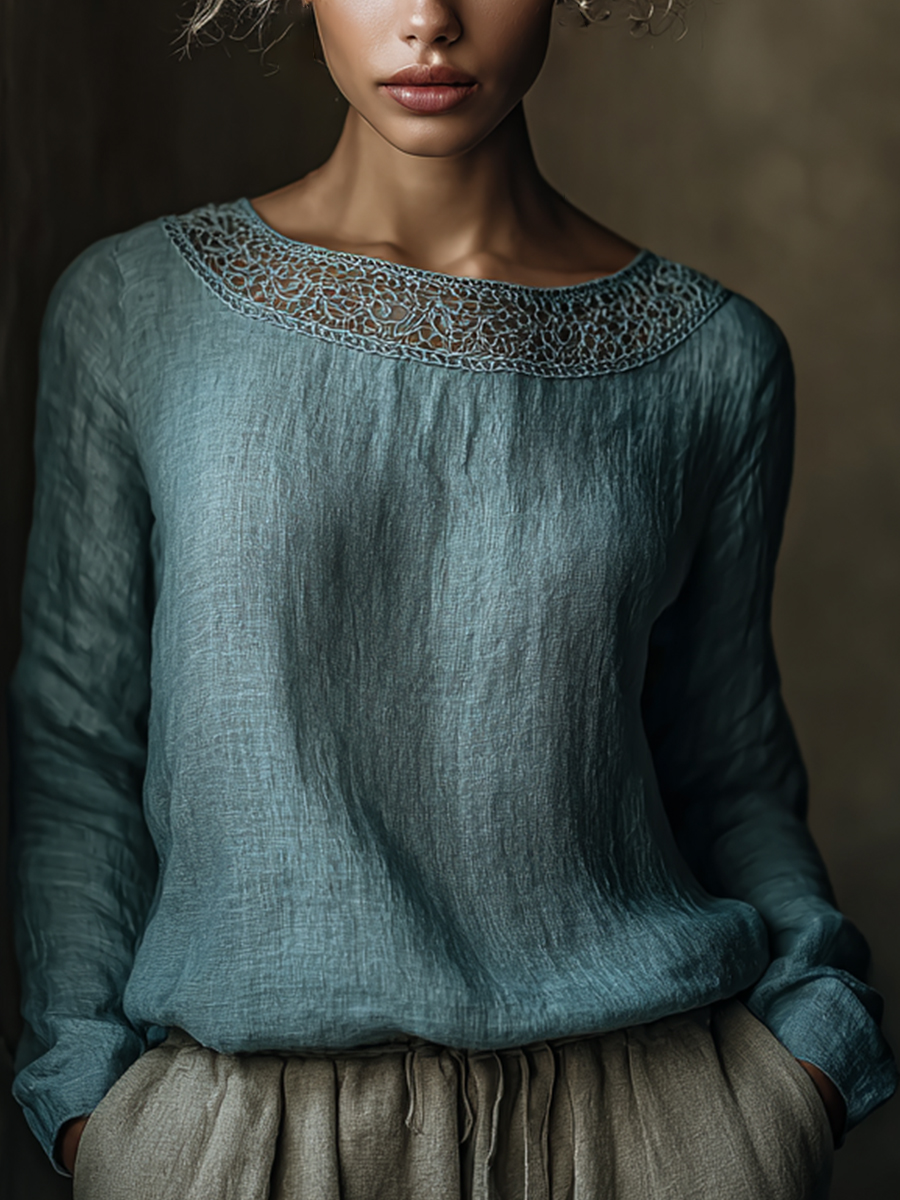 Women's Elegant Lace Linen Vintage Shirt