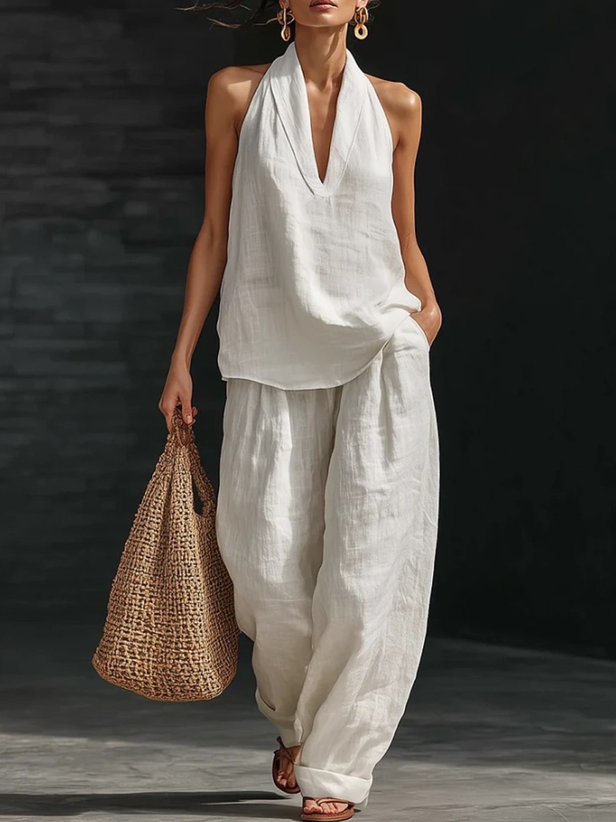 Women's Solid Color Cotton Linen Sleeveless Jumpsuit