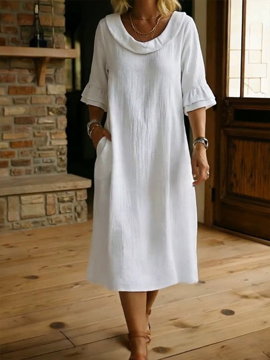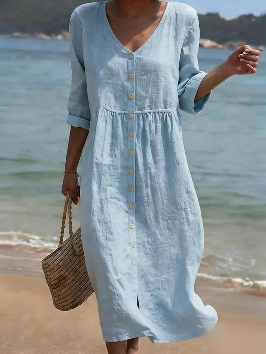 Women's Simple Solid Color Cotton Linen Cardigan Dress