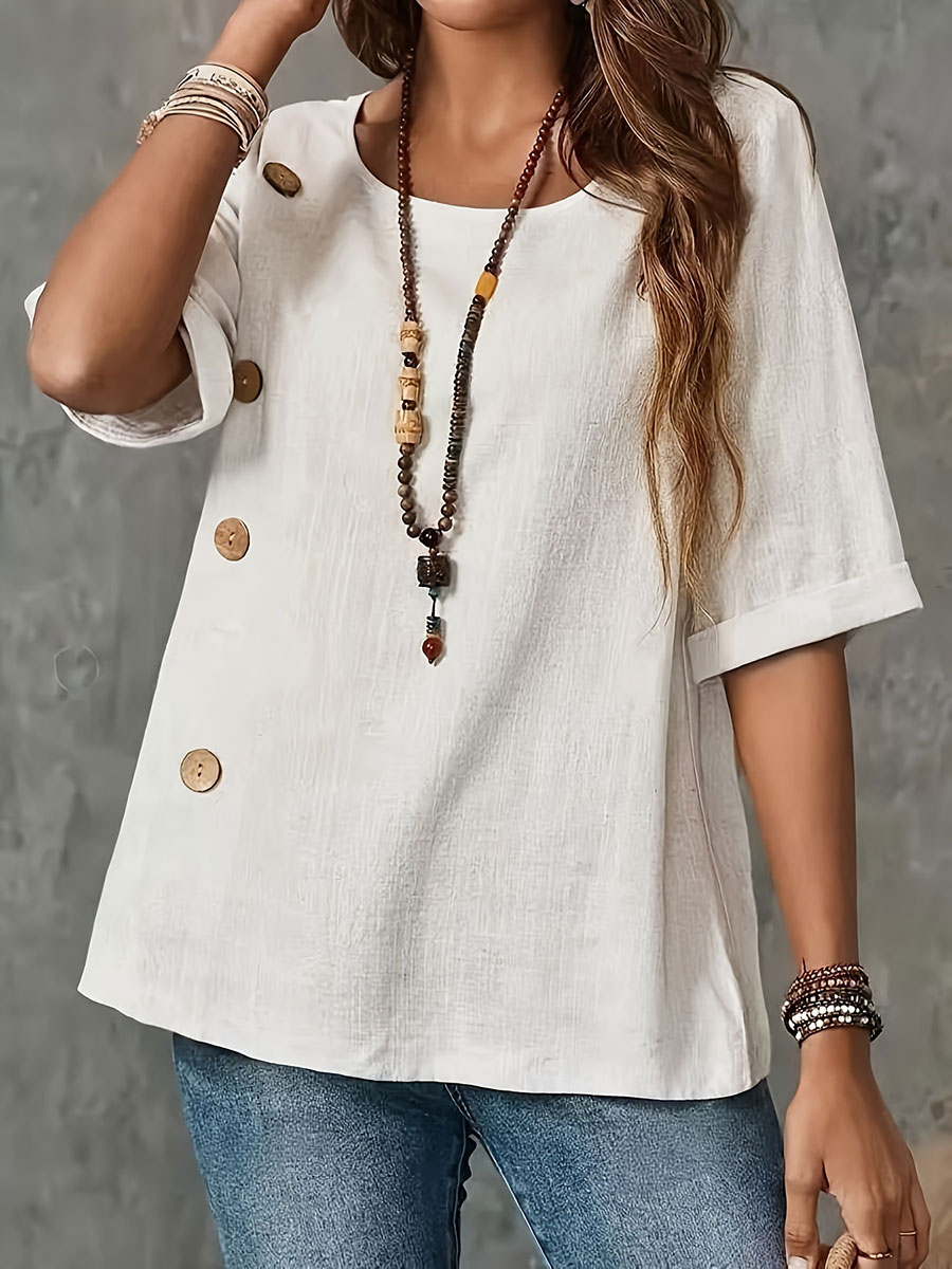 Women's Simple Solid Color Linen Shirt
