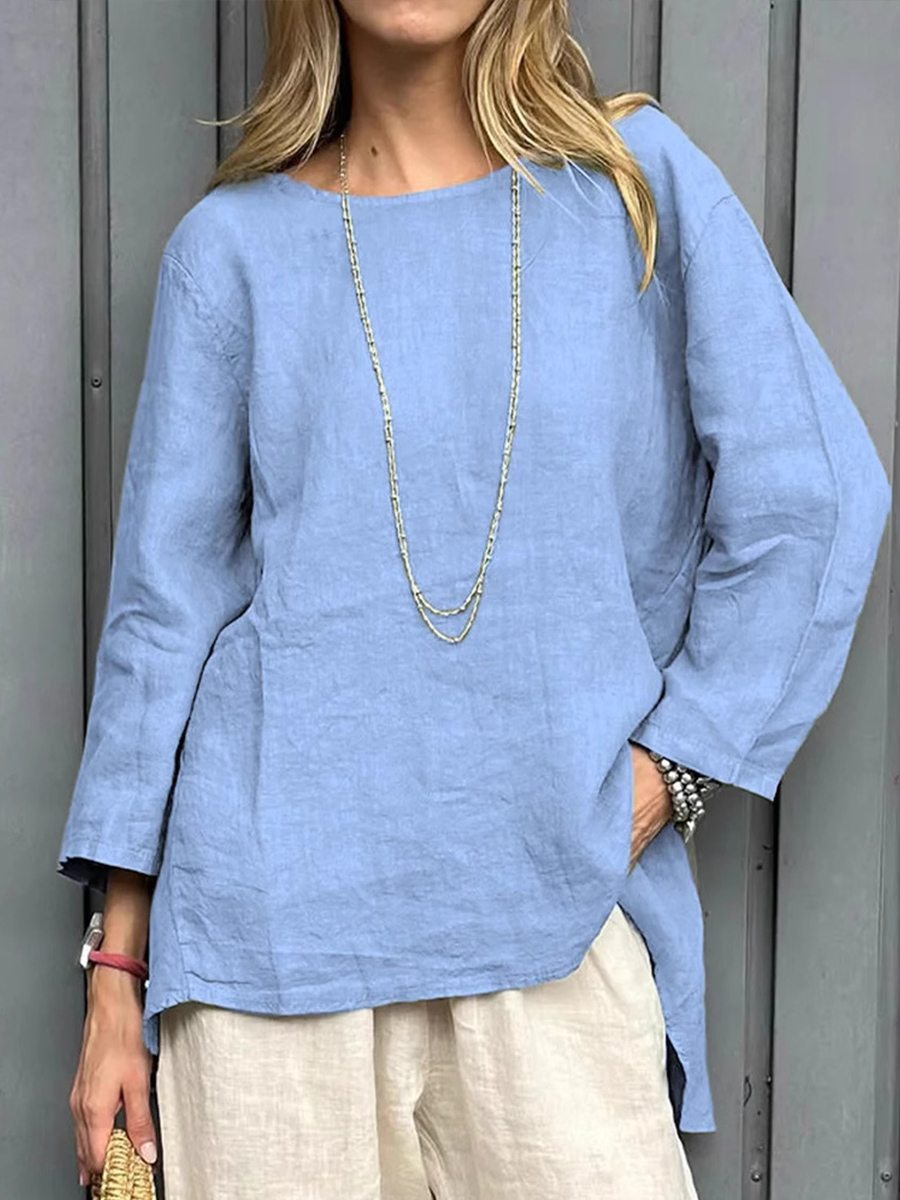 Women's Simple Solid Color Linen Long Shirt