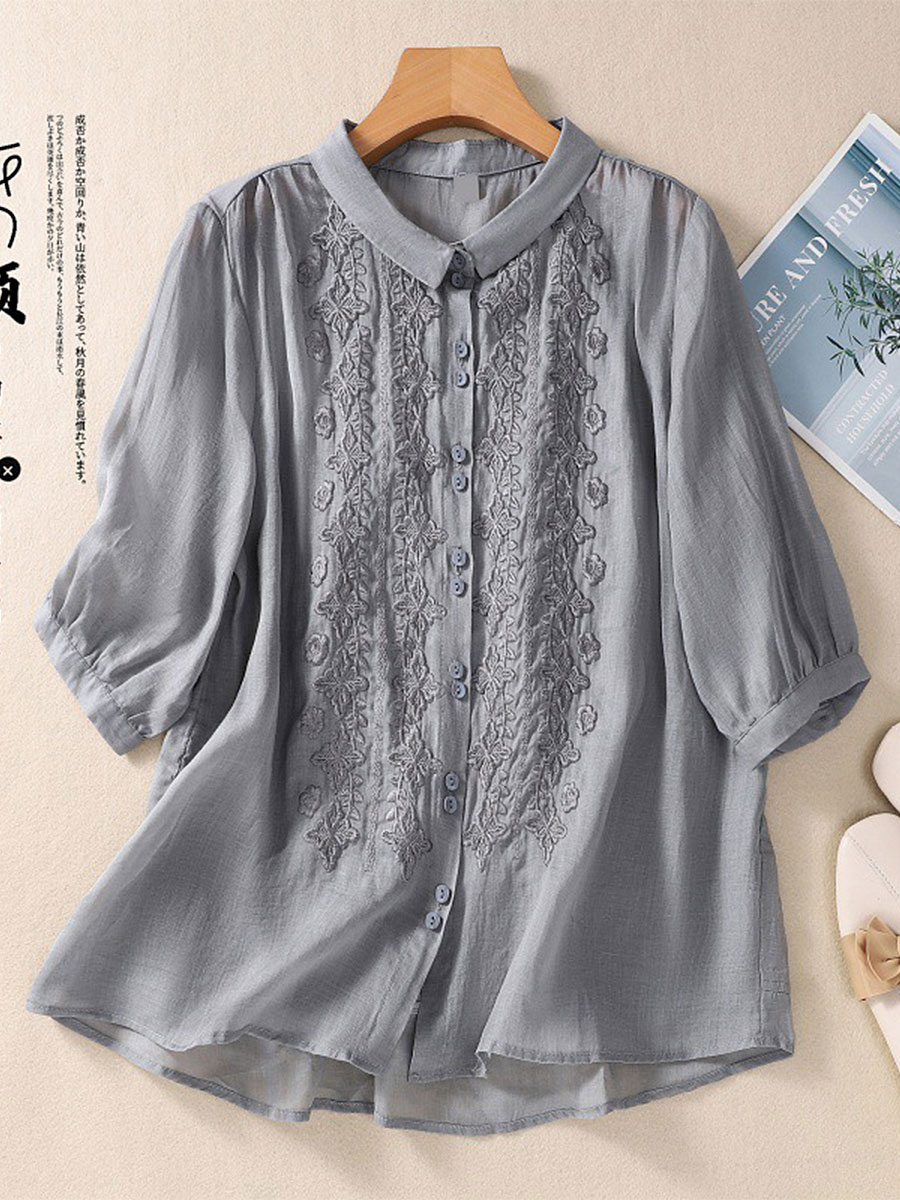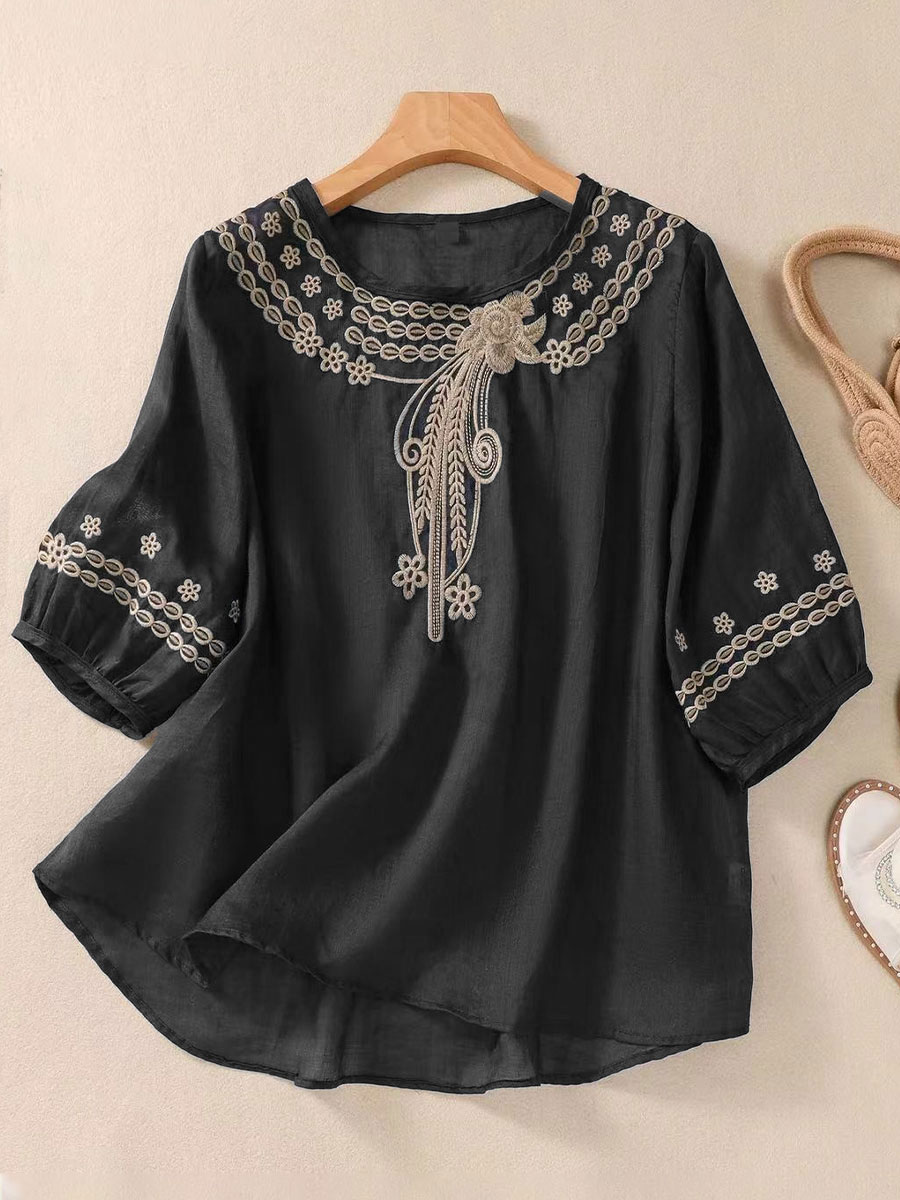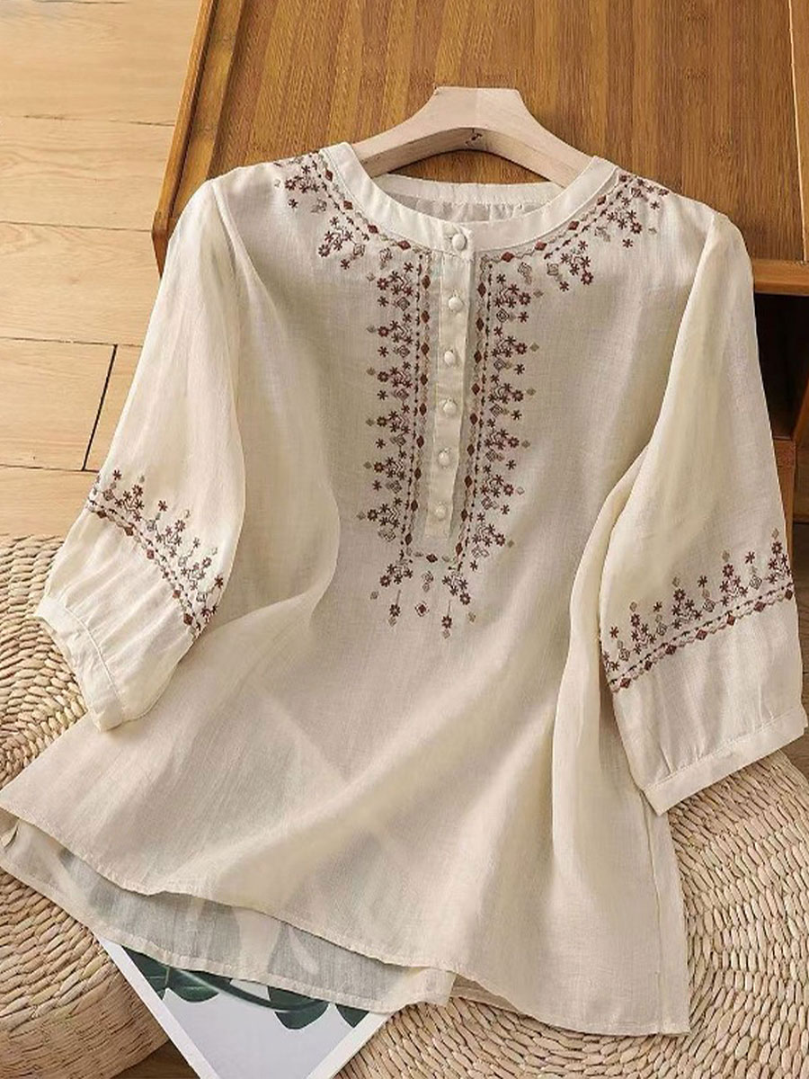 Women's Linen V-Neck Raglan Long Sleeve Shirt