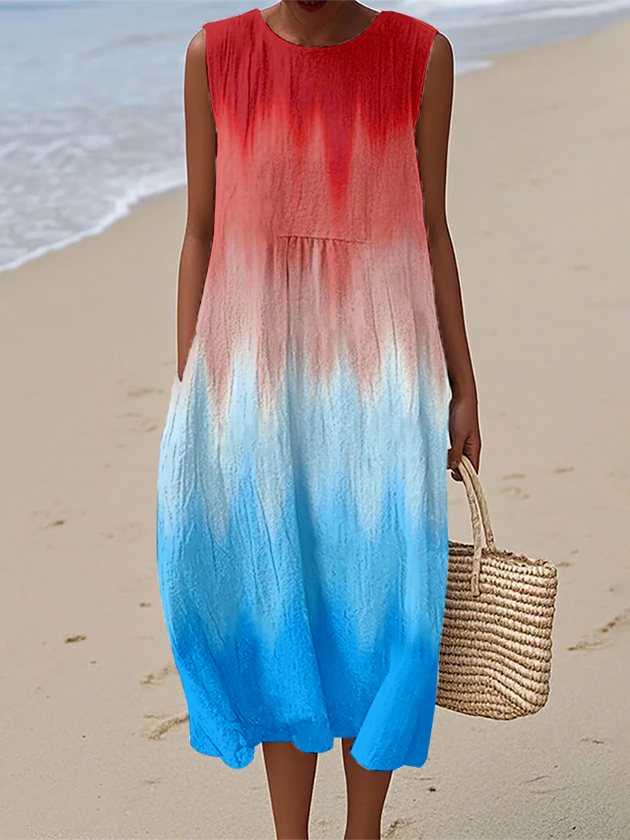 Women's Independence Day Inspired Contrast Color Linen Dress