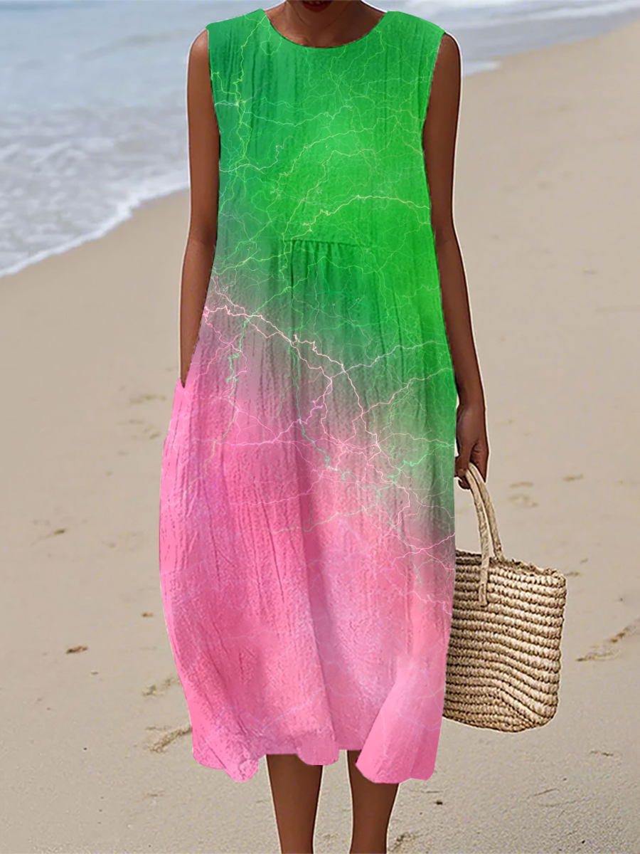 Womens Green And Pink Contrast Colors Inspired Linen Dress