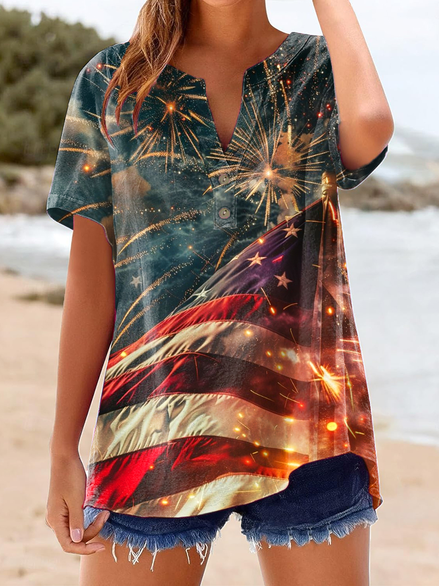 Women's Independence Day Flag Linen Shirt