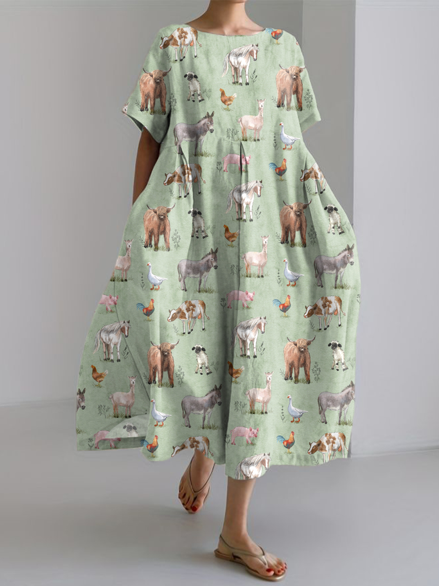 Women's Farm Animals Print Linen Dress