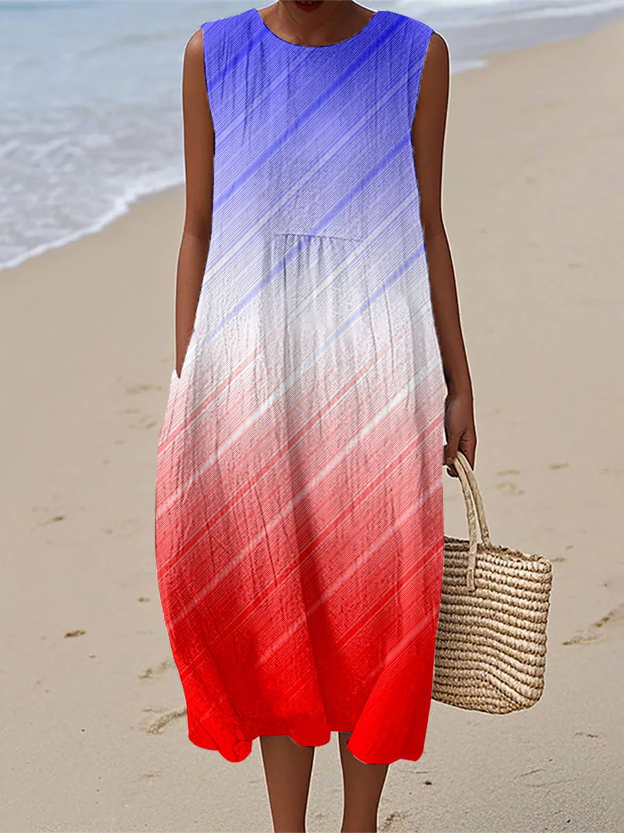 Women's Independence Day Inspired Contrast Color Linen Dress