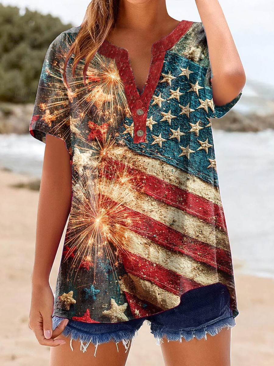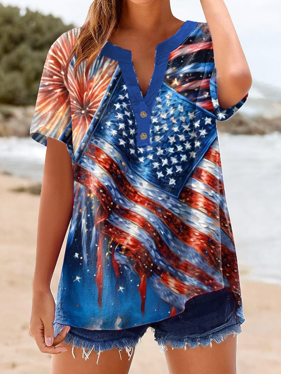 Women's Independence Day Flag Linen Shirt