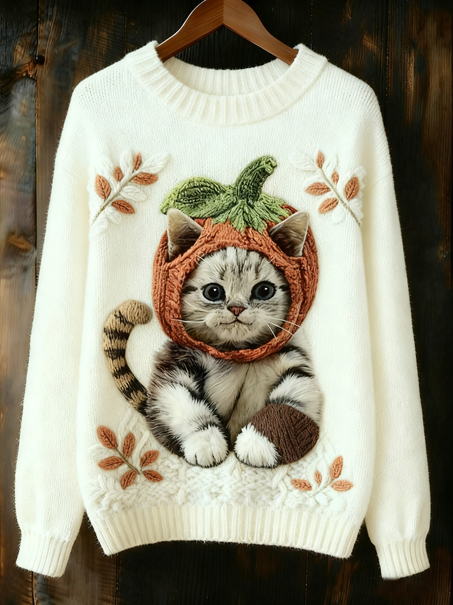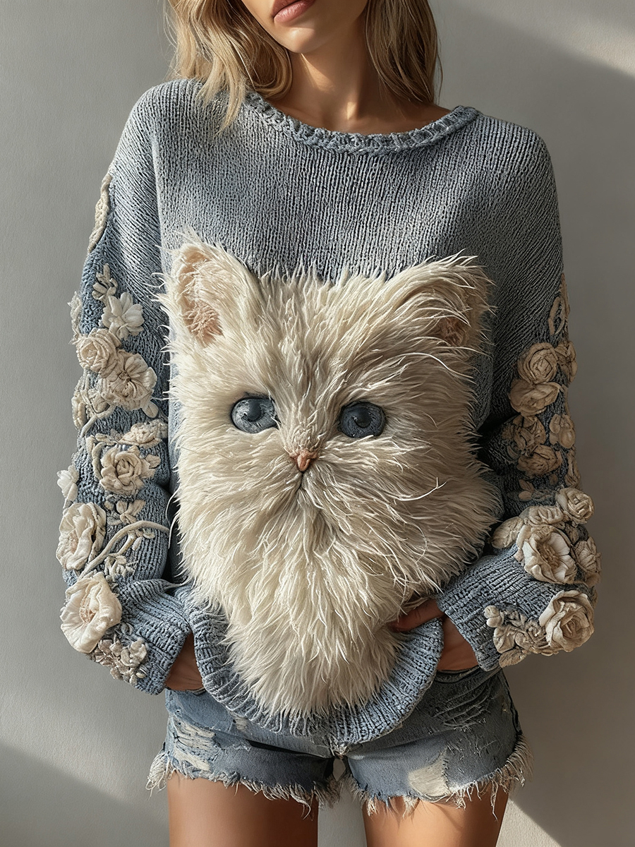 Women‘s Cute Winter Cat Print Cat Lovers Casual Sweatshirt