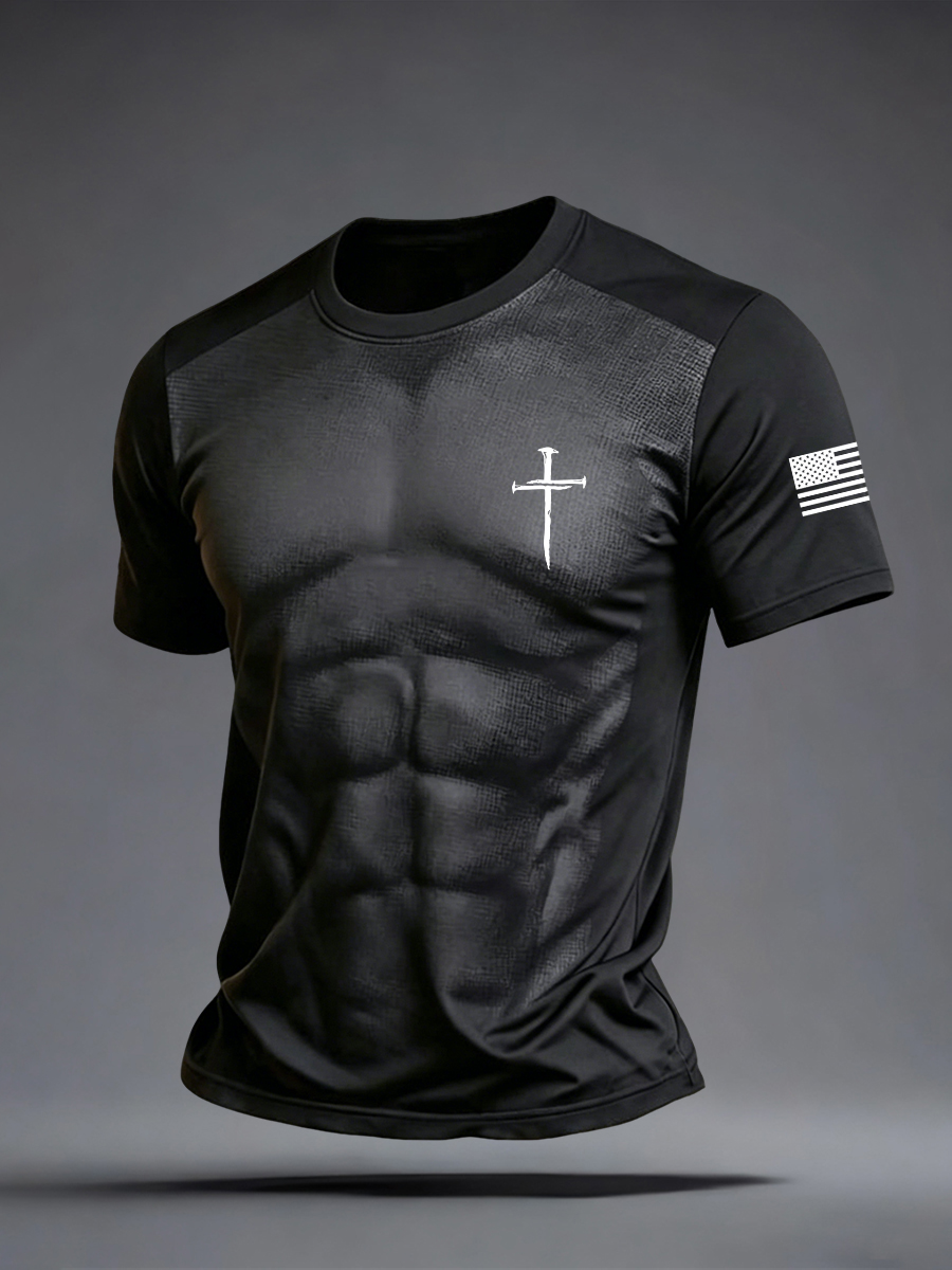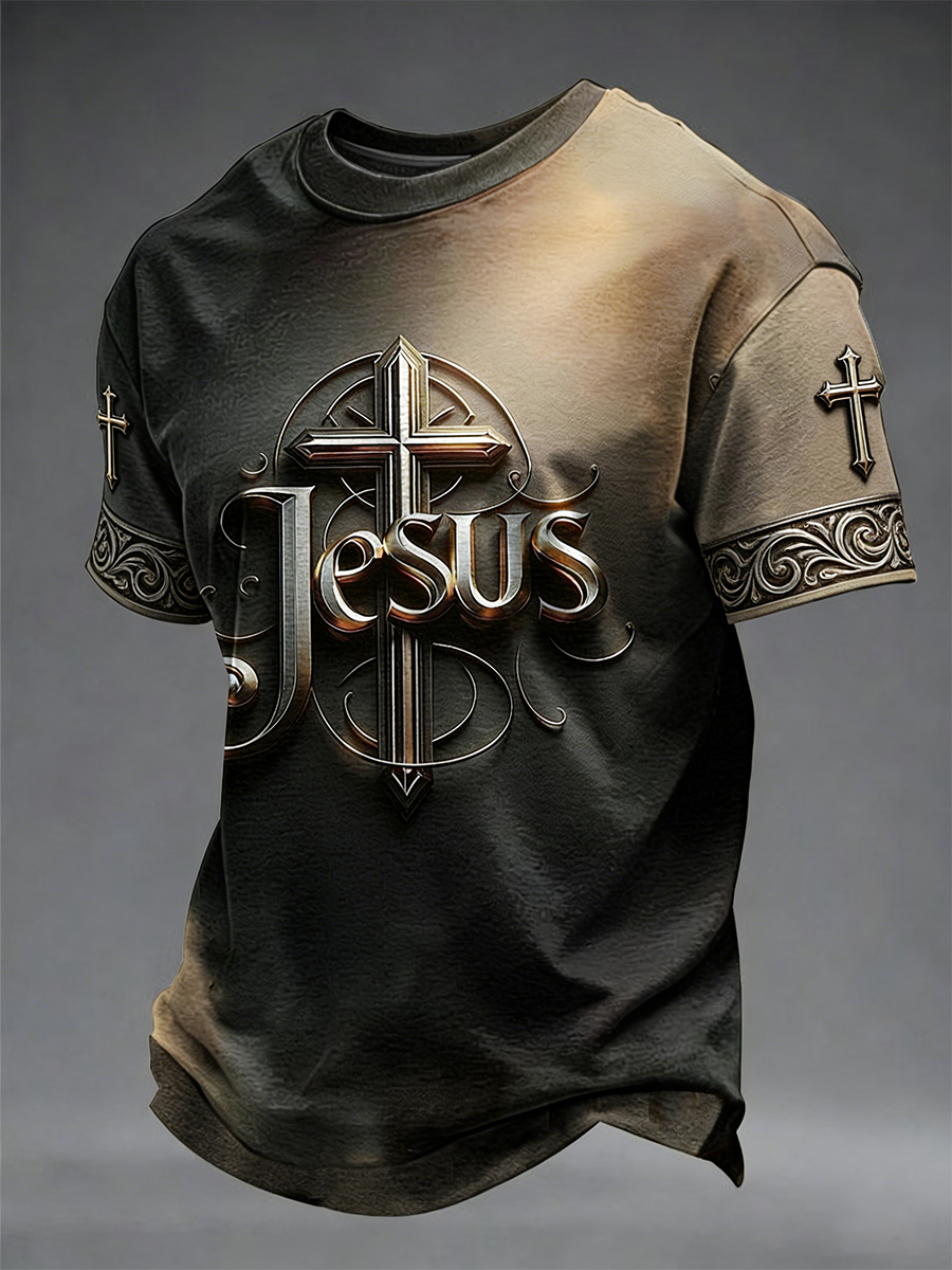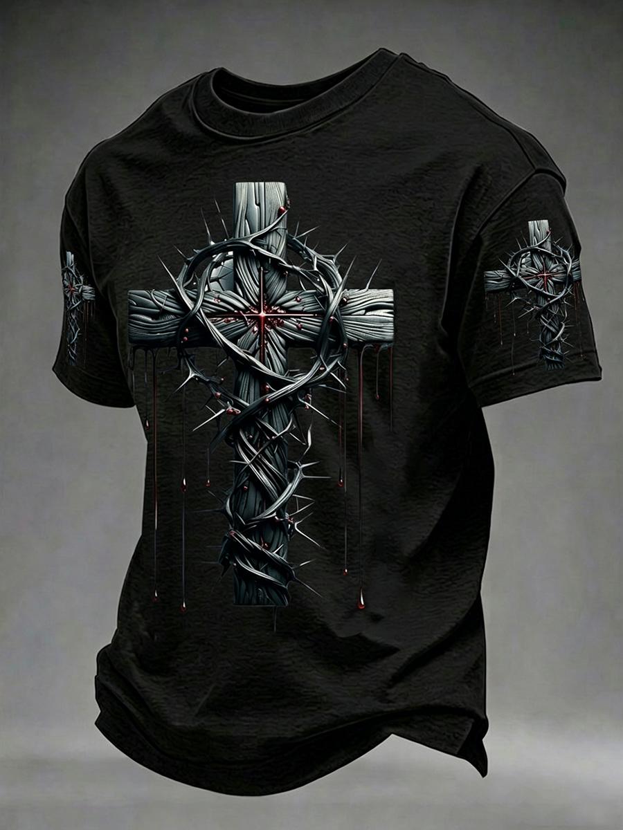 Men's Christian Cross O-neck Short Sleeve T-shirt