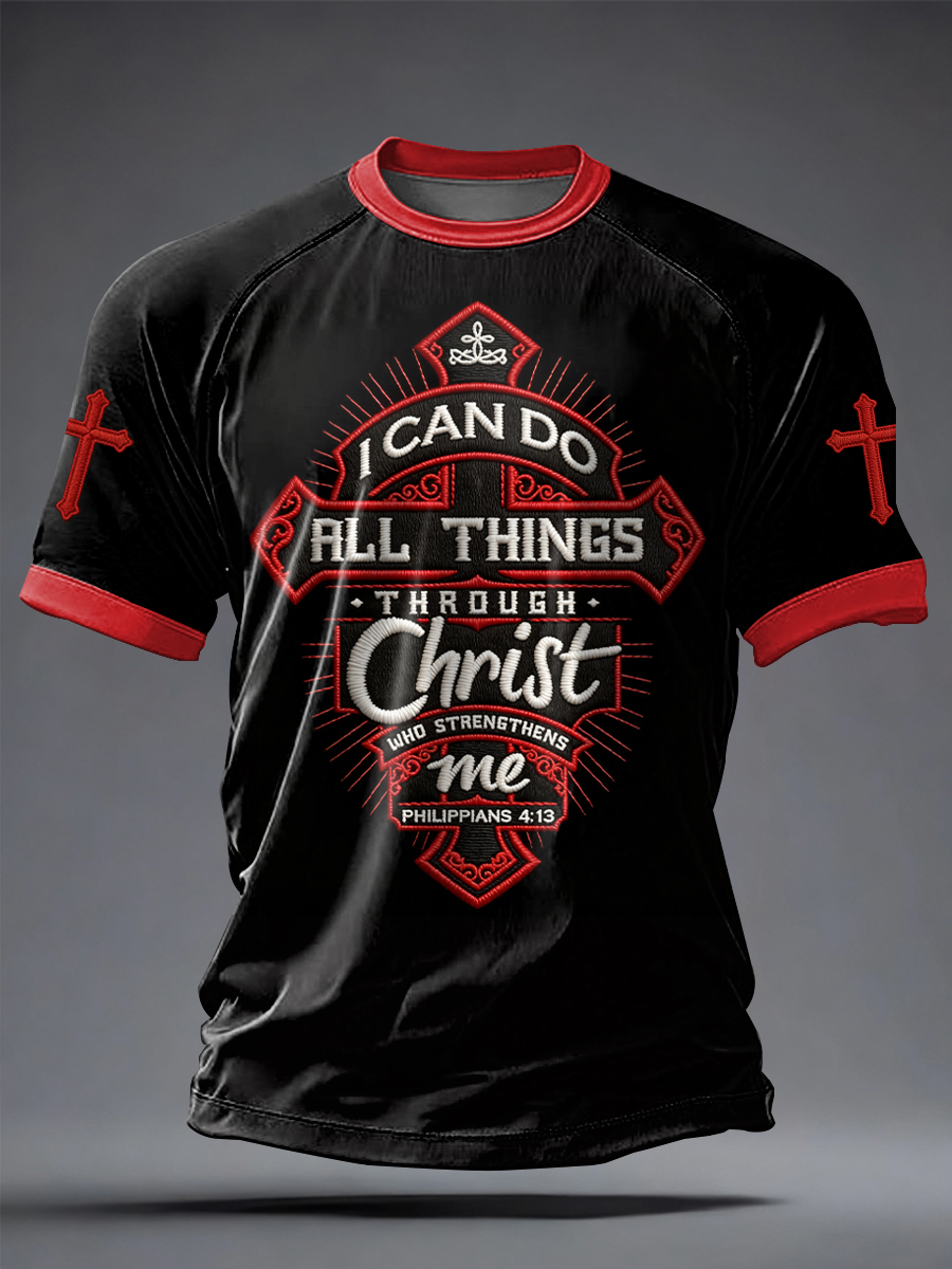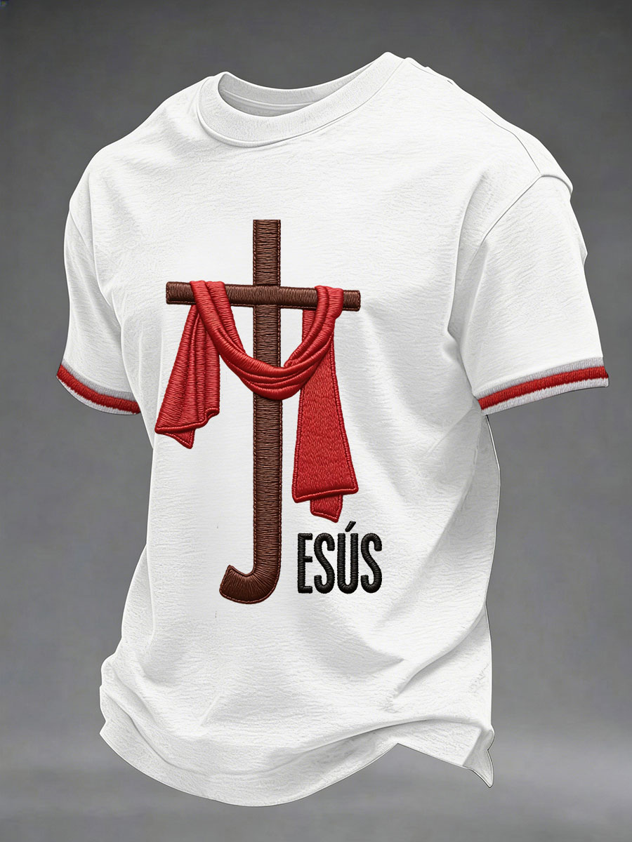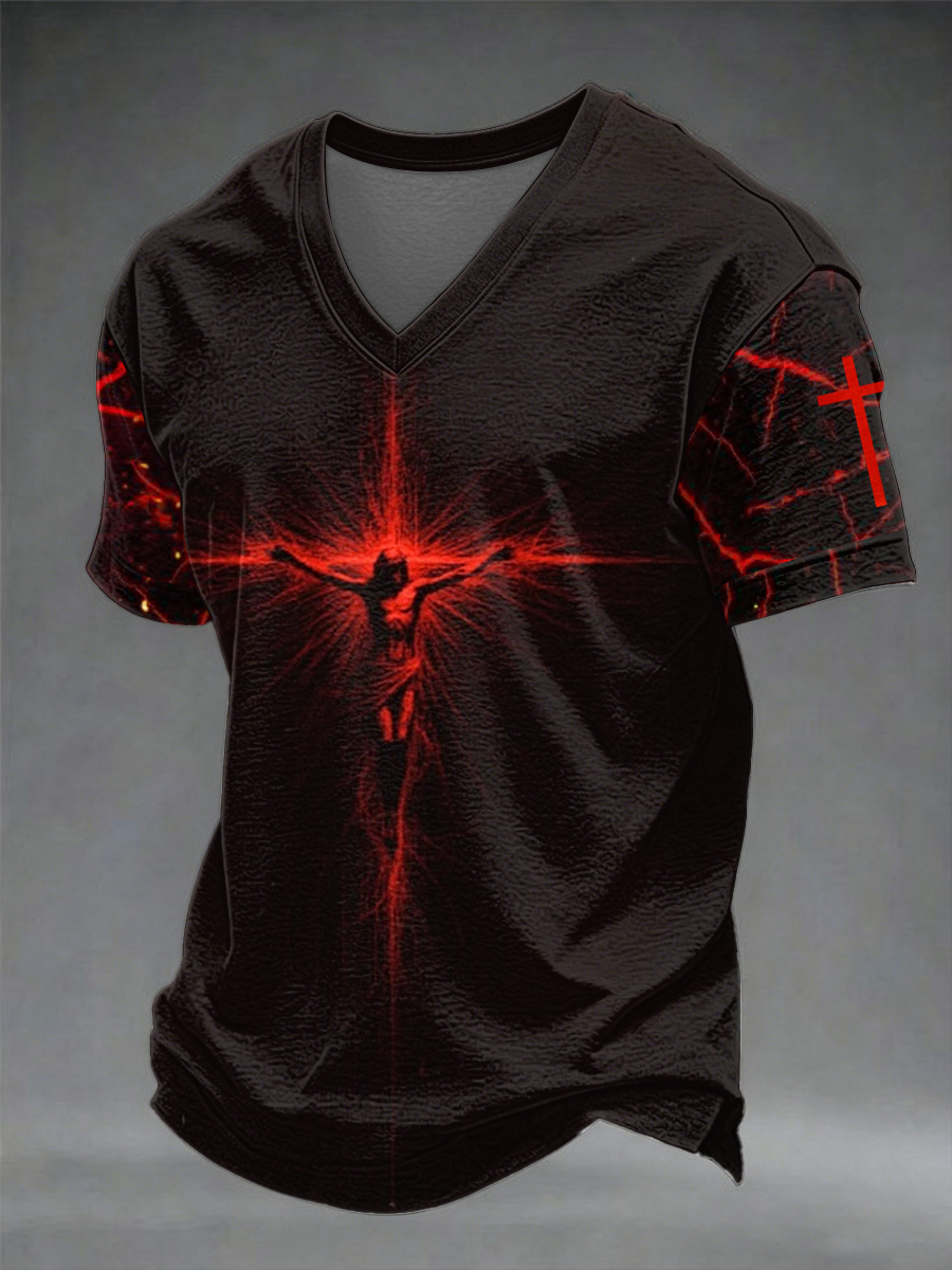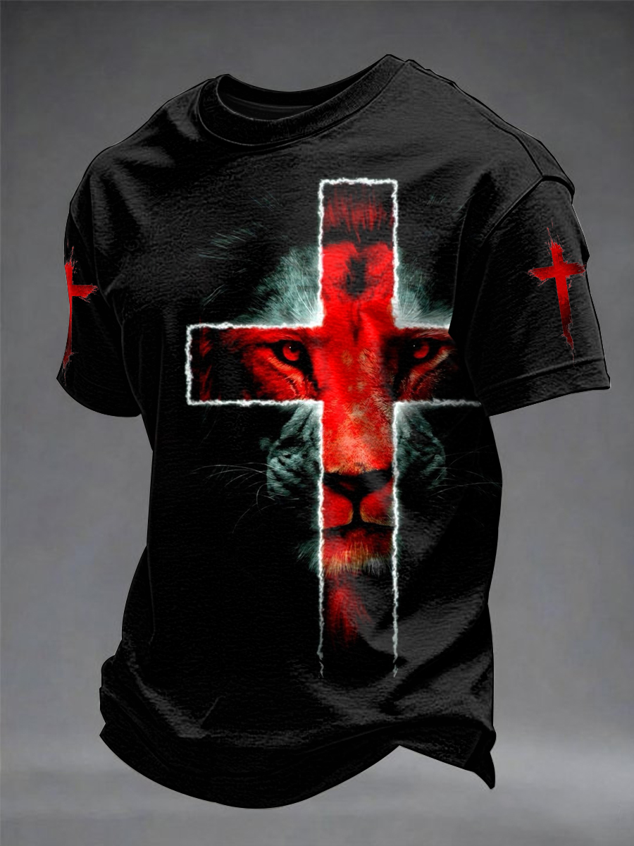 Men's Christian Cross O-neck Short Sleeve T-shirt