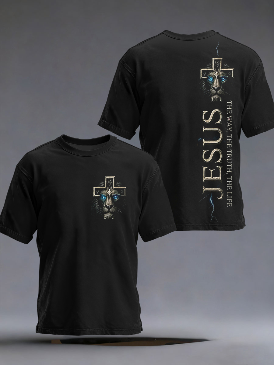 Men's Jesus The Way The Truth The Life Lion Print Casual Tee