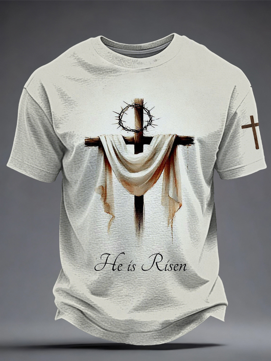 Men's He Is Risen Easter Jesus Christian Cross Print Casual Tee