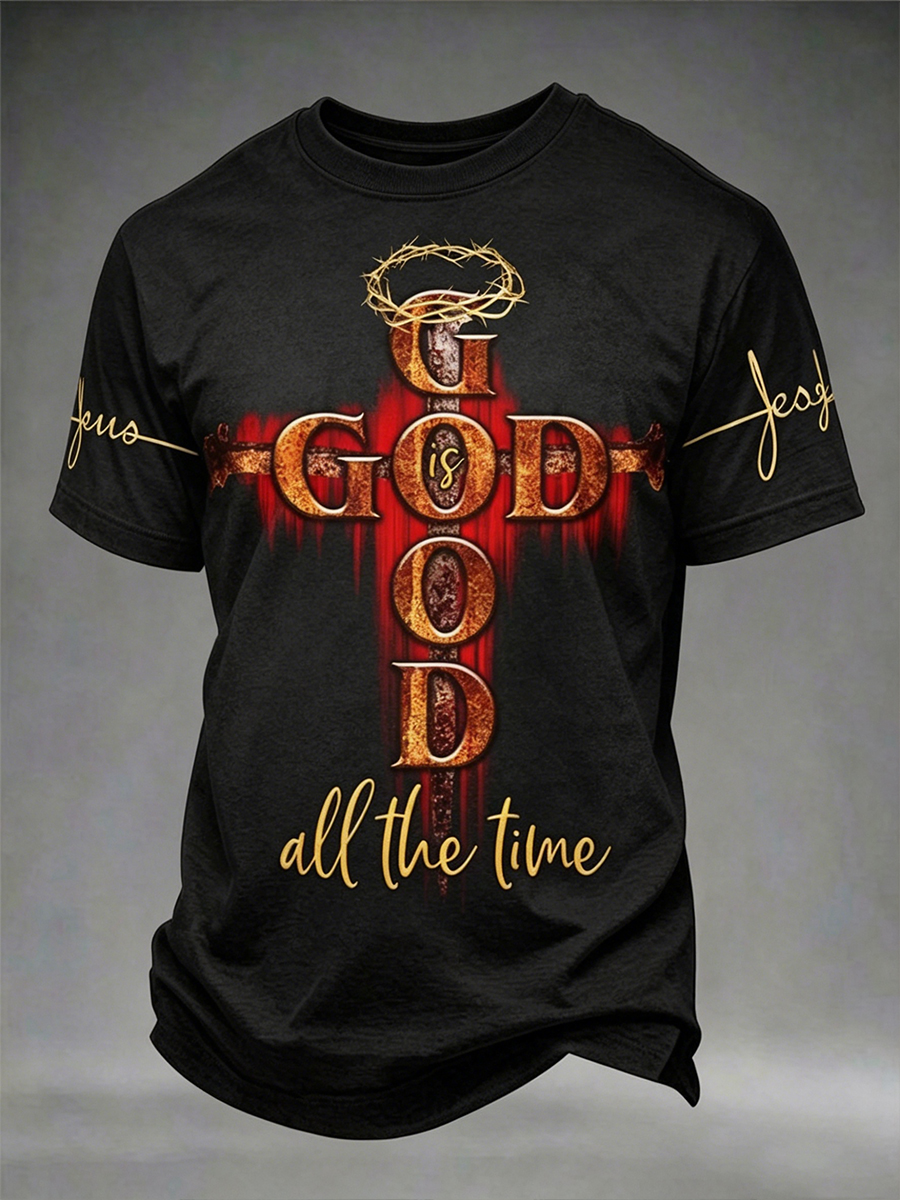 Men's Christian God Is Good All The Time Cross O-neck Short Sleeve T-shirt