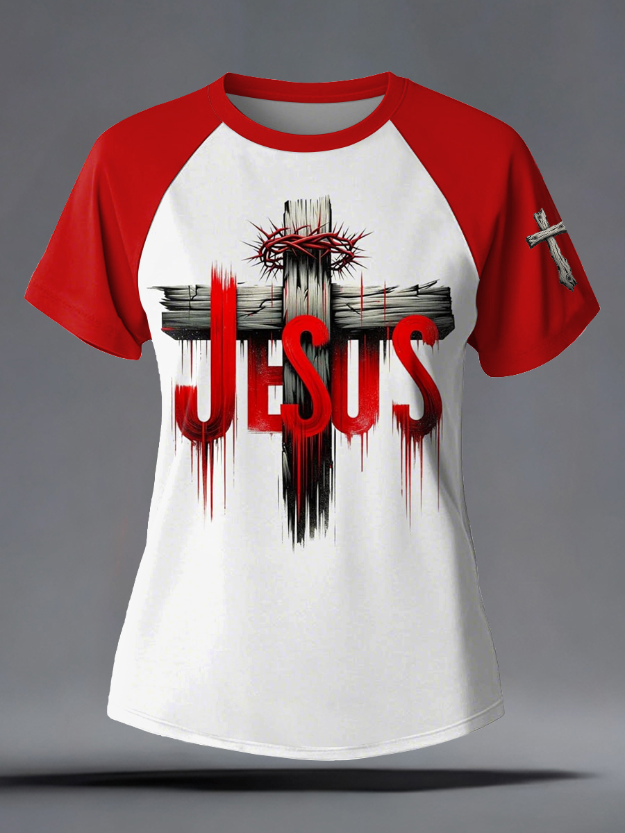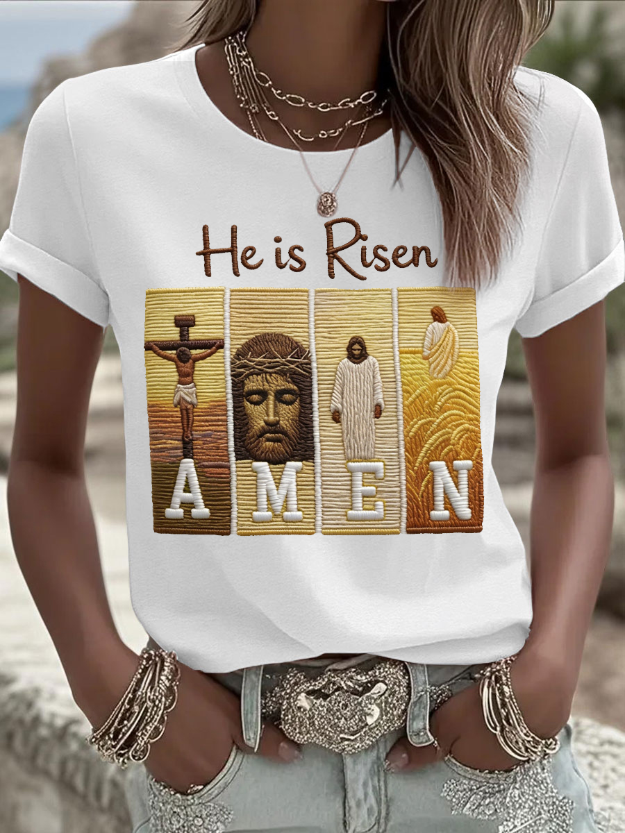 Women's He Is Risen Jesus Christian Cross Print Tee