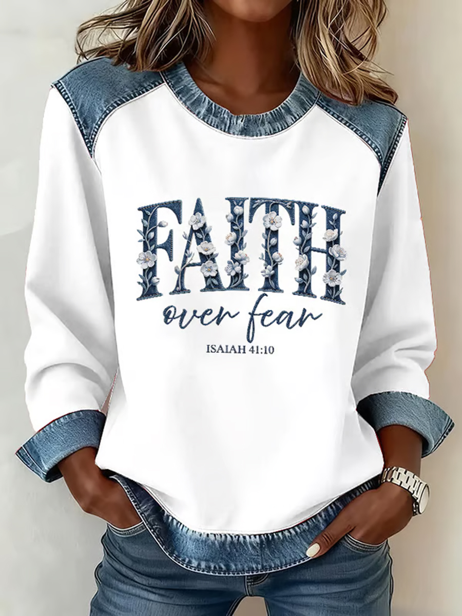 Women's Faith Pattern Patchwork Art Sweatshirt