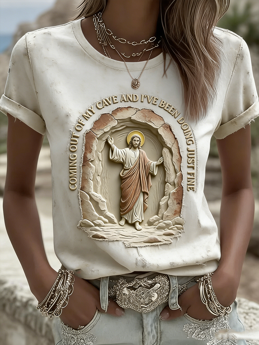 Women's He Is Not Here He Has Risen! Jesus Christian Cross Print Casual Tee