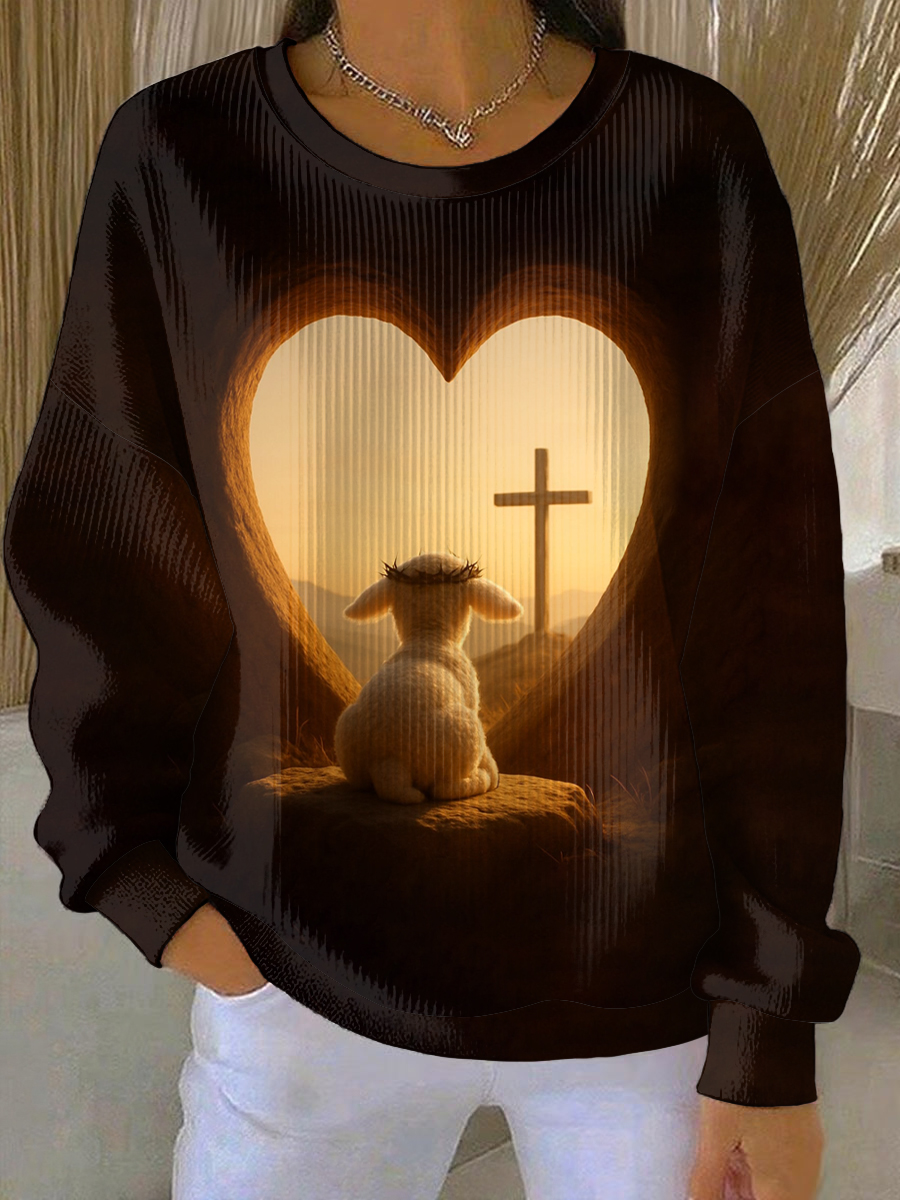 Women's He Is Risen Jesus Christian Cross Print Casual Sweatshirt