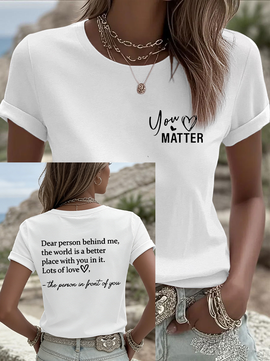 Women's Dear Person Behind Me You Matter Printed Short Sleeve T-Shirt