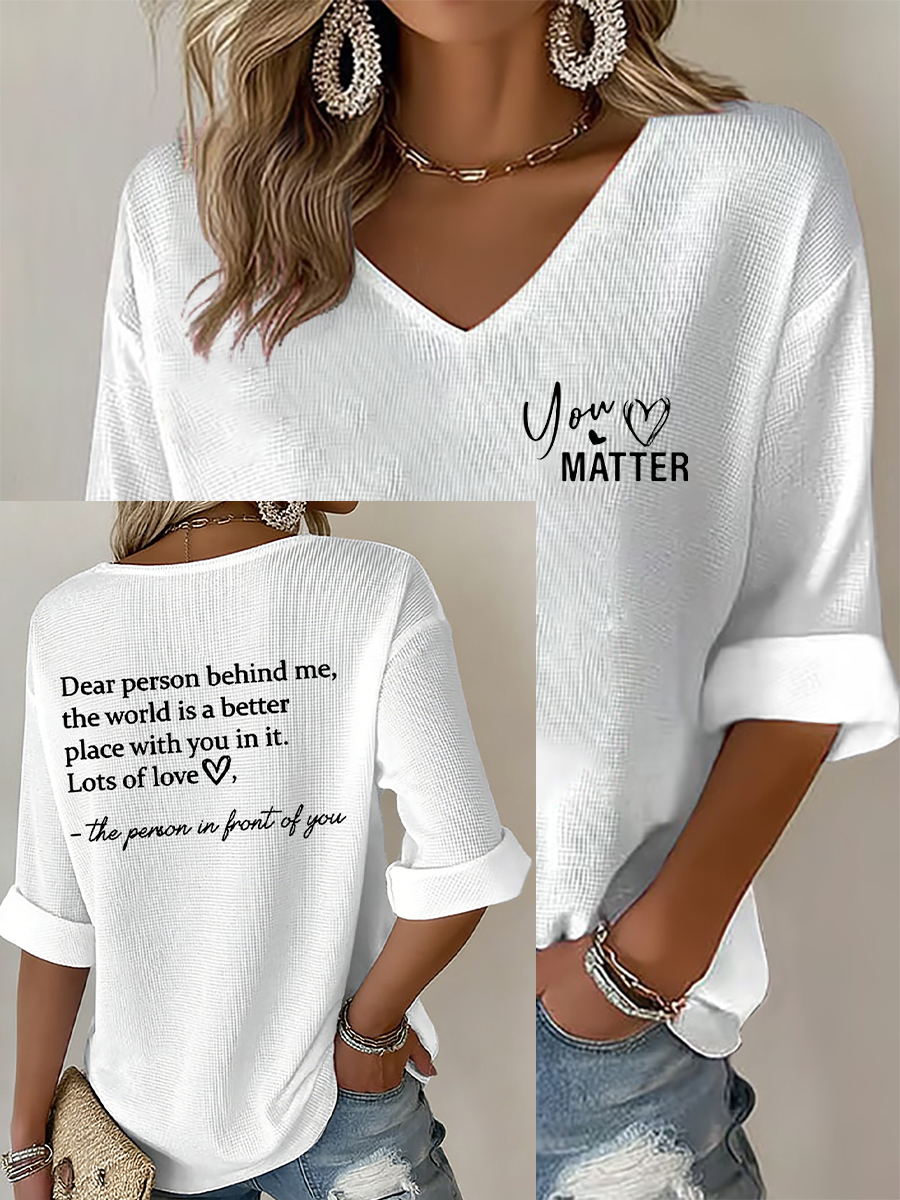 Women's Dear Person Behind Me You Matter Printed Waffle Casual Short Sleeved T-Shirt