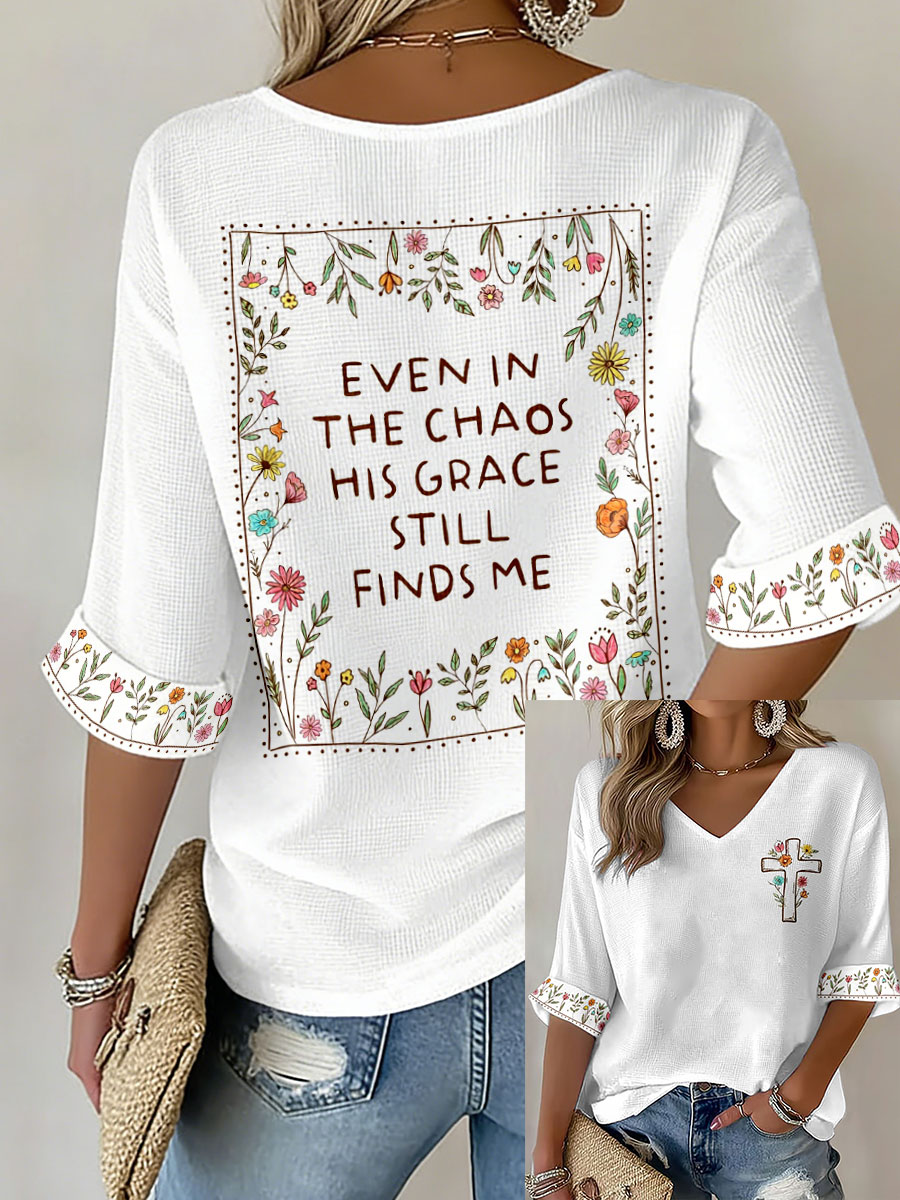 Women's 'even in the chaos his grace still finds me' V-neck tops