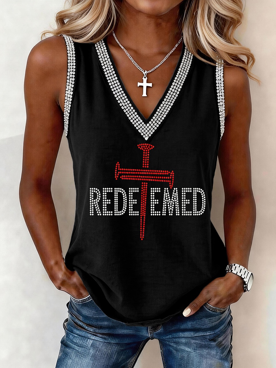 Women's Redeemed Rhinestone Pattern V-Neck Tank Top