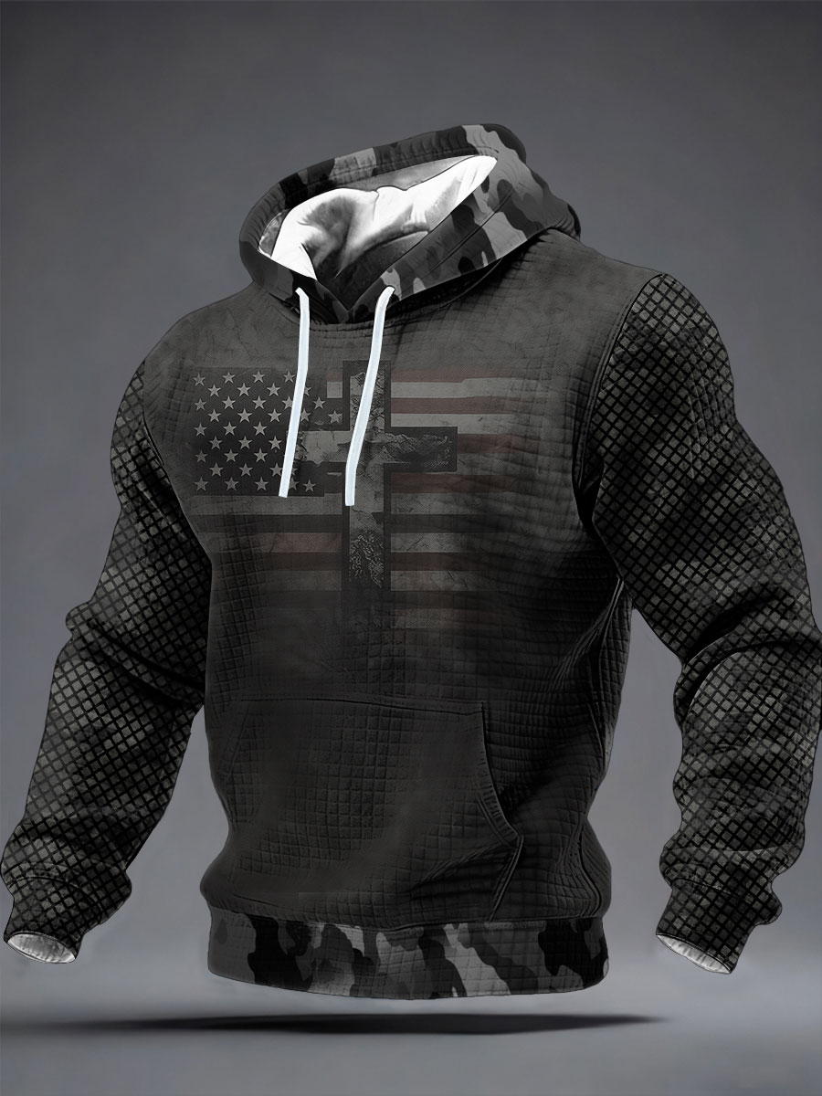 Men's Flag Cross Camouflage Checkered Cotton Hoodie