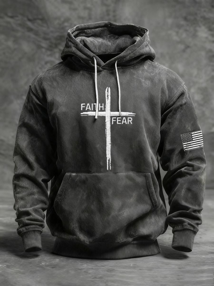 Men's Faith Is The Only Thing Stronger Than Fear Print Casual Hoodie