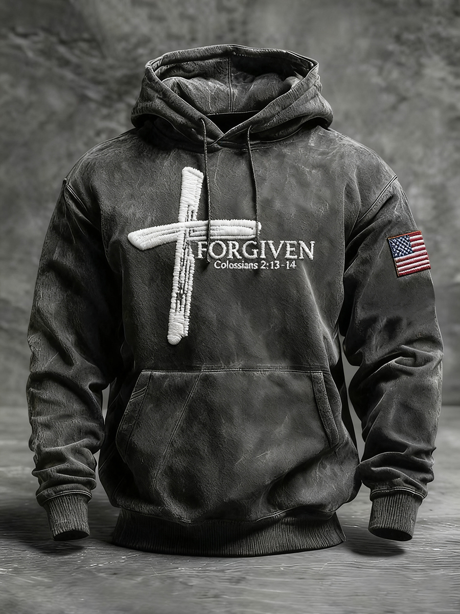 Men's Faith Cross Oversized Drop-Shoulder Hoodie with Pockets