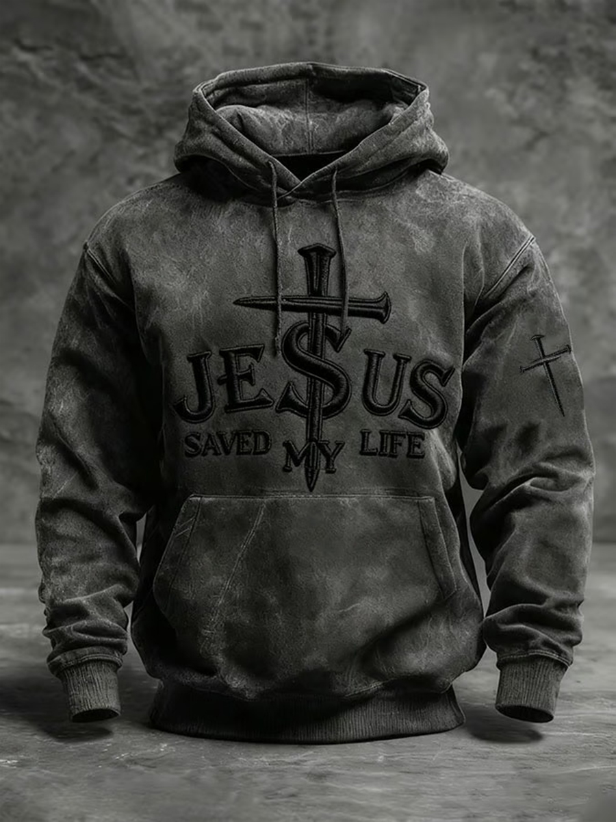 Men's JESUS SAVED MY LIFE Print Casual Hoodie