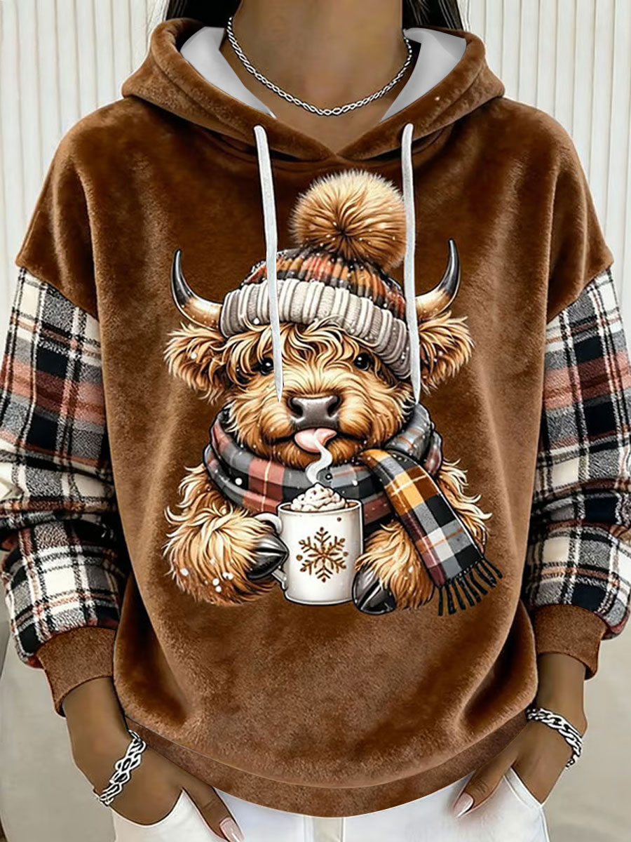 Women's Winter Cute Highland Cow Flannel Hoodie