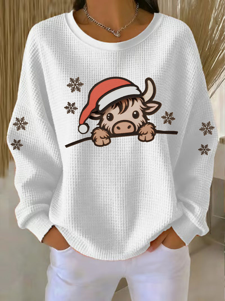 Women‘s Cute Winter Highland Cows Print Casual Sweatshirt