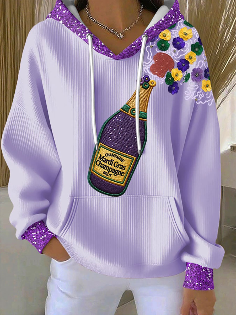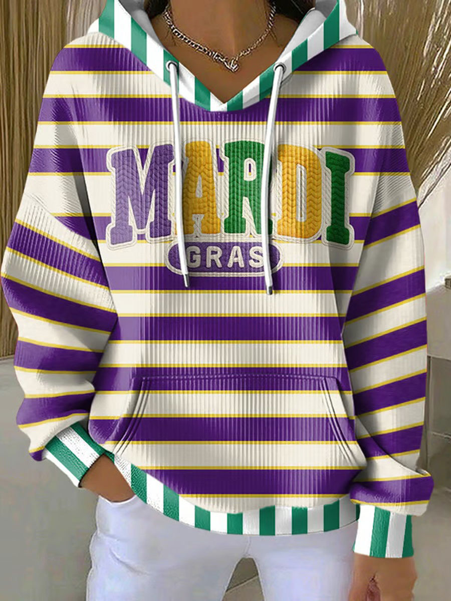 Women's Mardi Gras Print Casual Hoodie