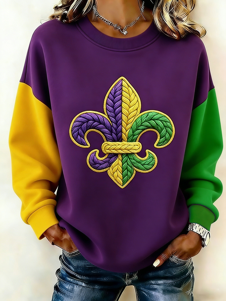 Women's Mardi Gras Fleur De Lis Colorblock Print Casual Sweatshirt