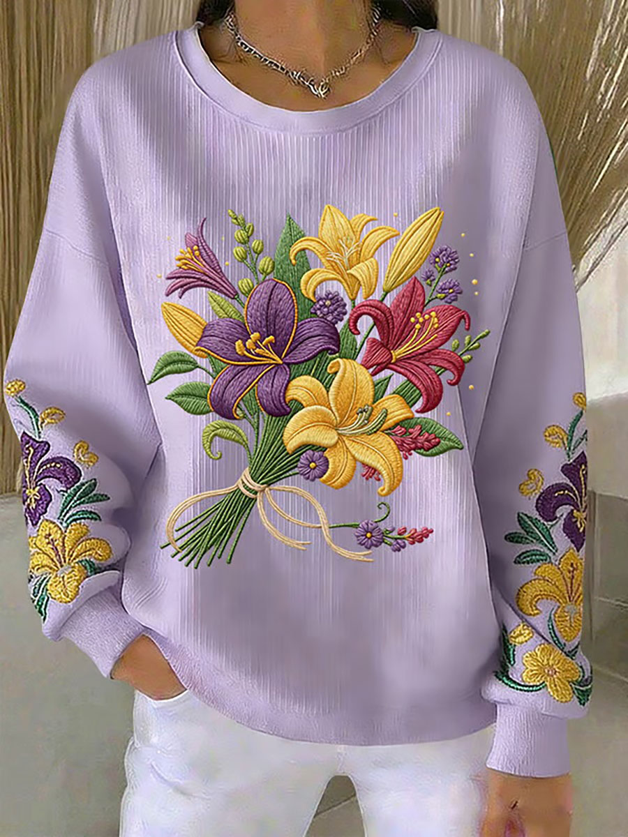 Women's Mardi Gras Fleur De Lis Ribbed Round-Neck Sweatshirt