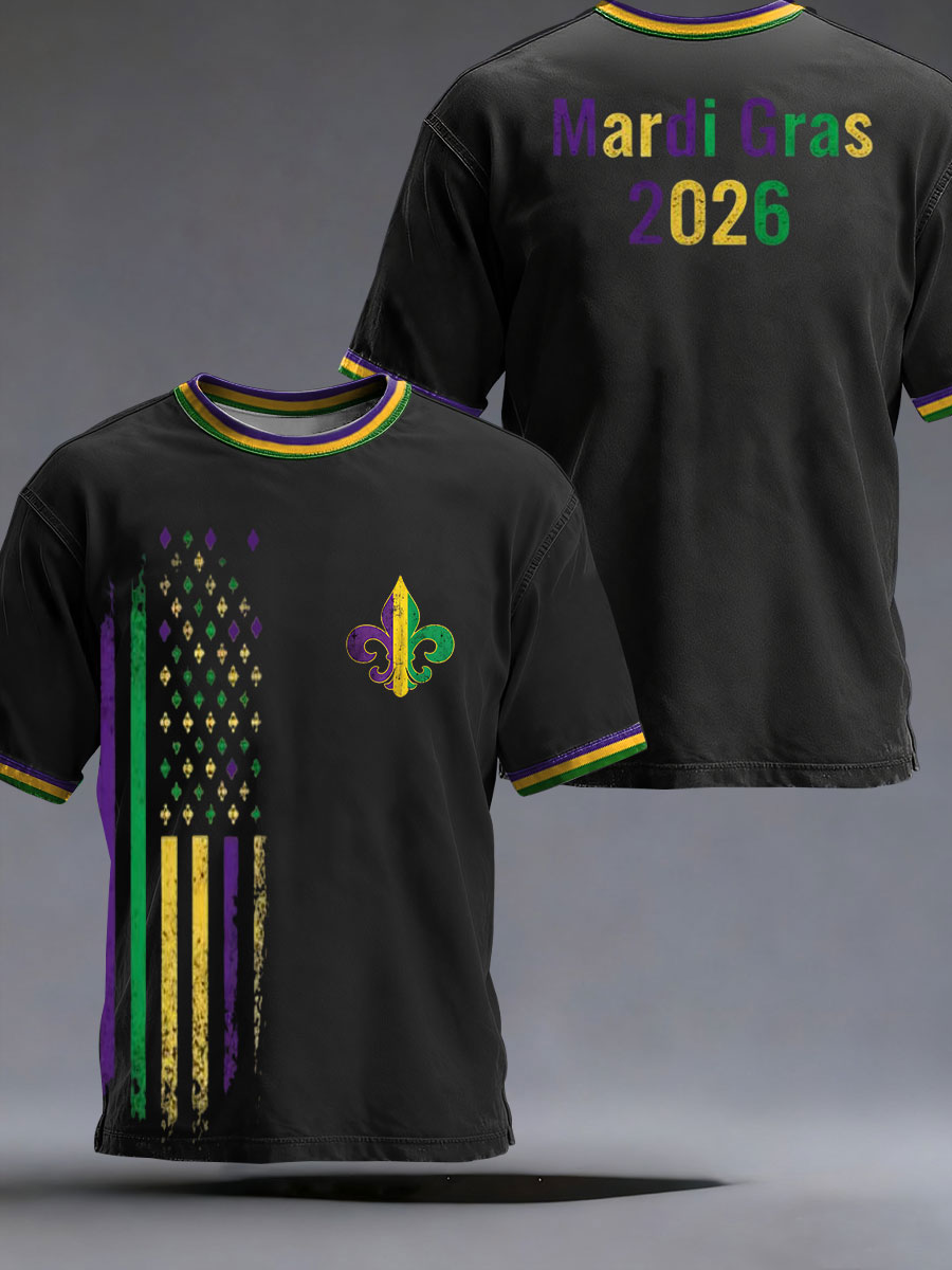 Men's Mardi Gras Beads Tree Fleur De Lis Print Casual Tee
