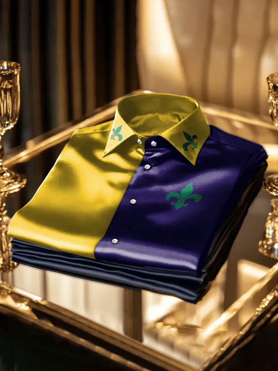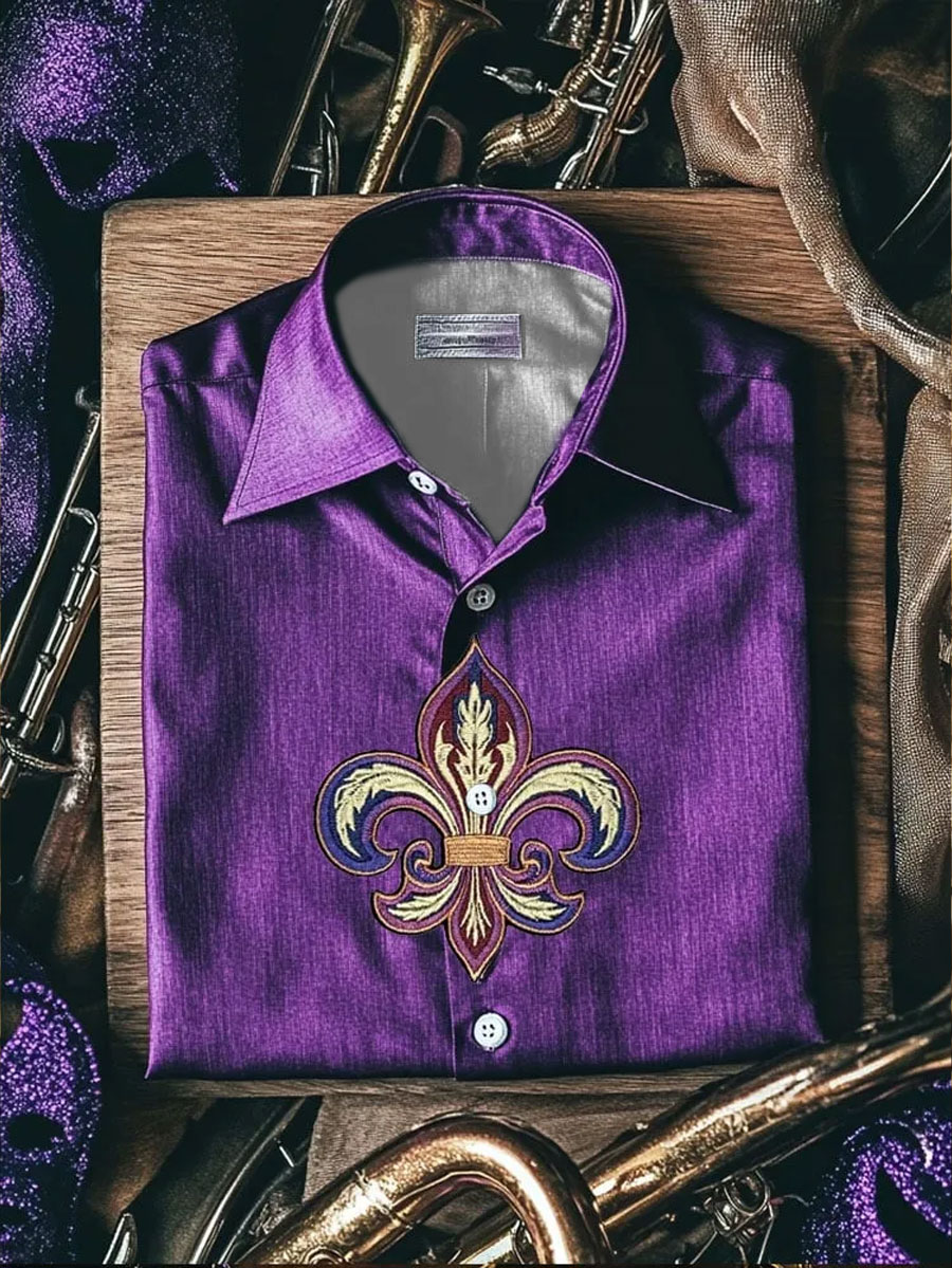 Men's Mardi Gras Fleur De Lis Gradient Print Casual Shirt