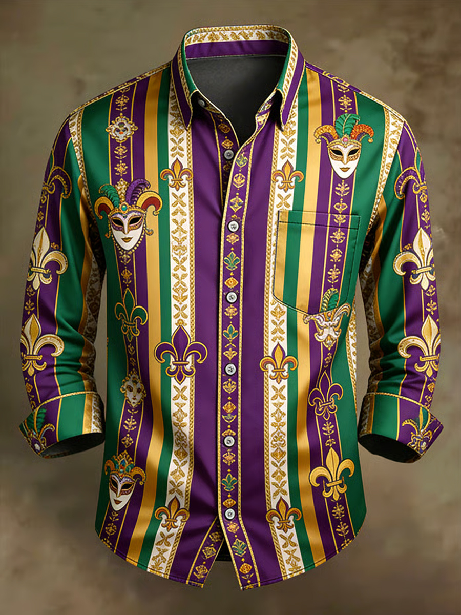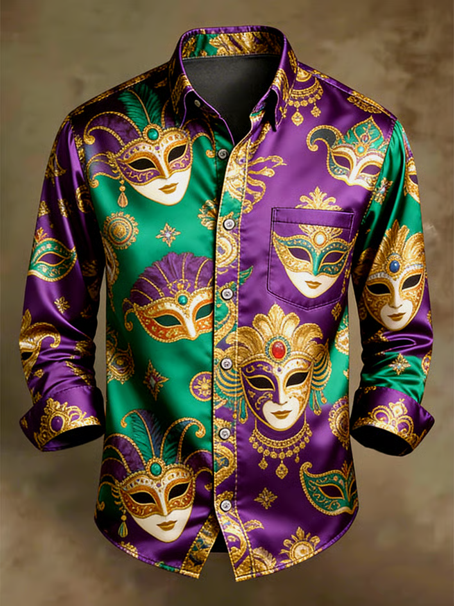Men's Luxury Business Style Mardi Gras Art Printed Shirt