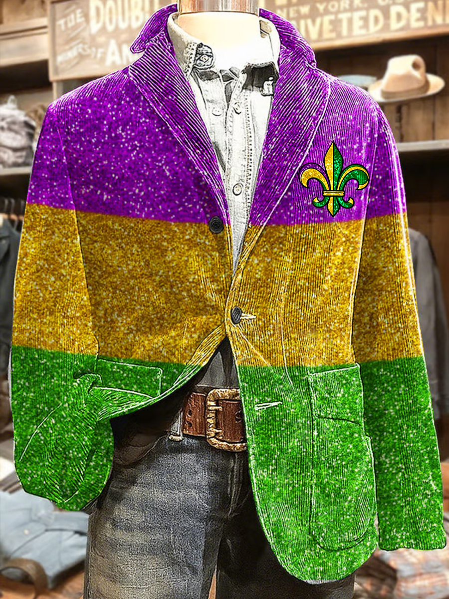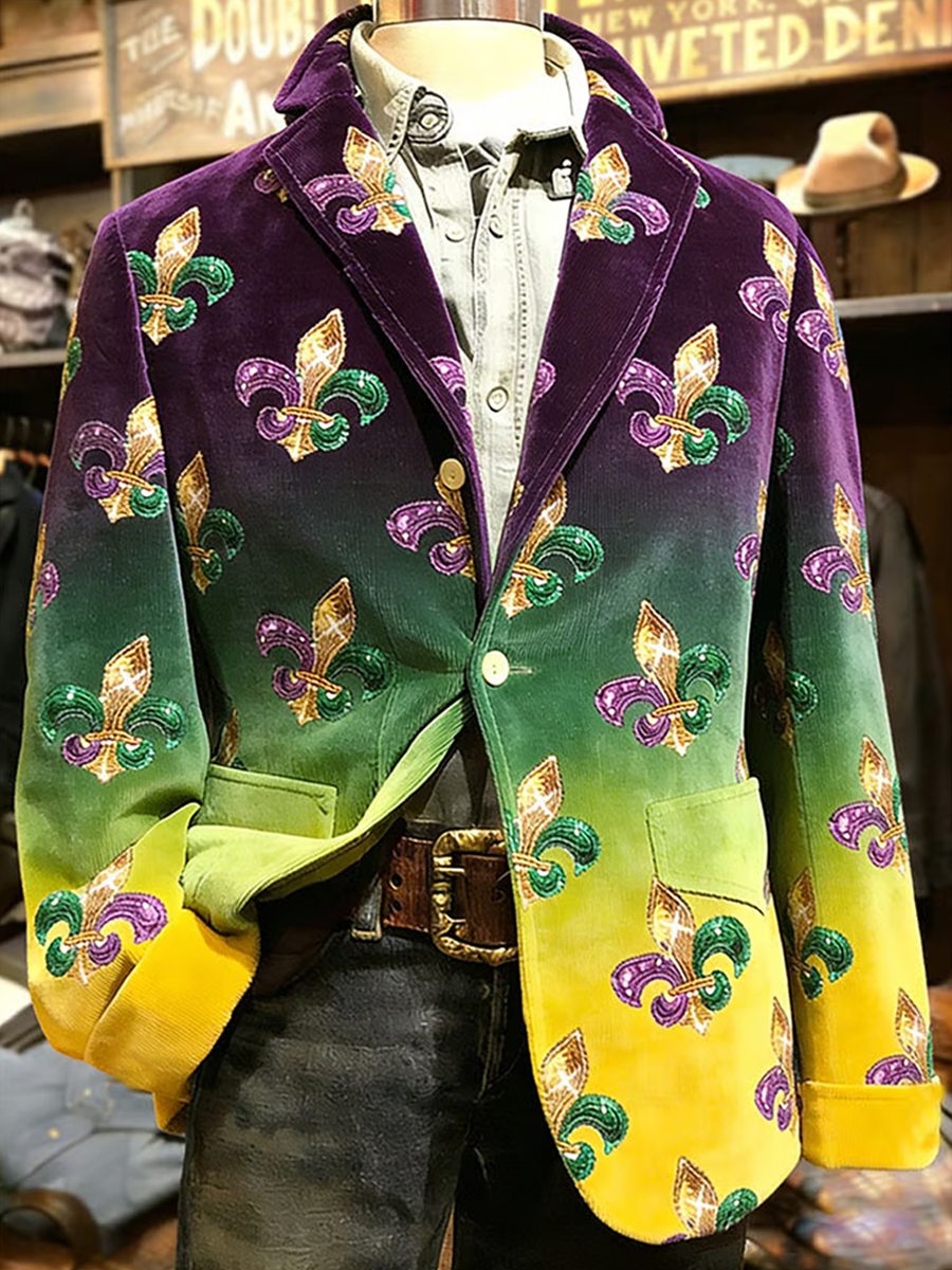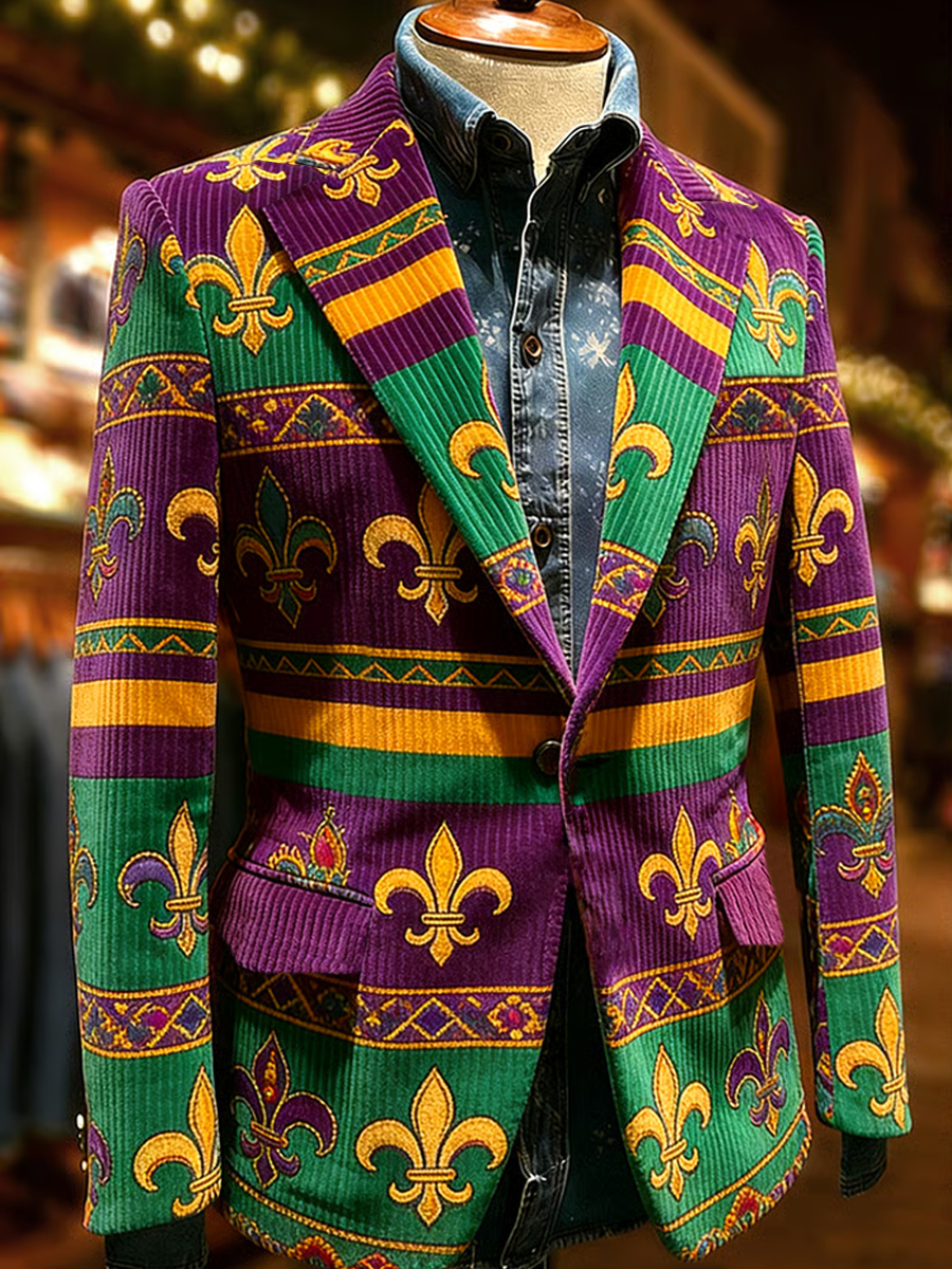 Men's Mardi Gras Fleur De Lis Colorblock Print Suit