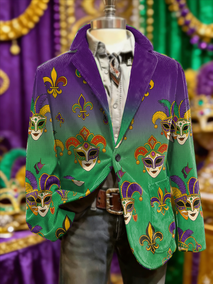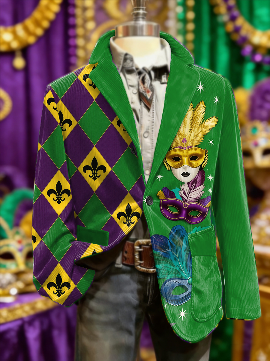 Men's Mardi Gras Fleur De Lis Mask Print Suit