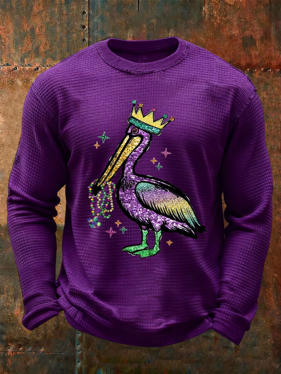 Men's Mardi Gras Crawfish Print Waffle Sweatshirt