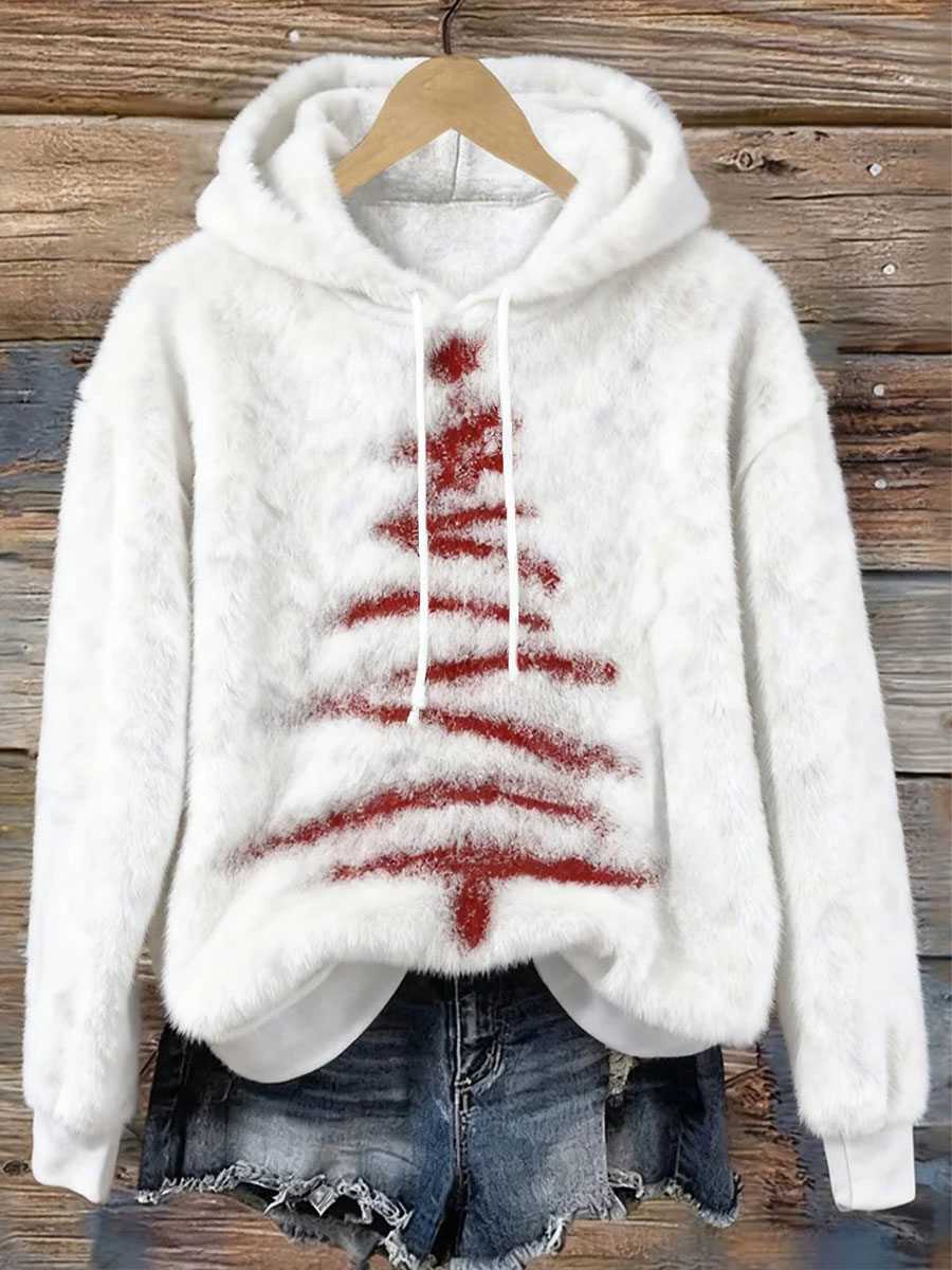 Women's Christmas Tree Print Casual Hoodie