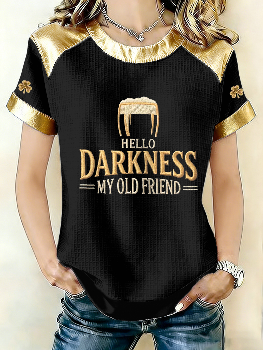 Women's Hello Darkness My Old Friend Patchwork Print Waffle T-Shirt