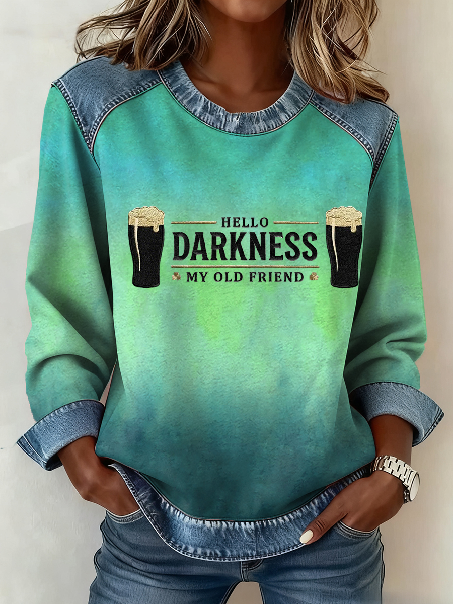 Women's Hello Darkness My Old Friend Denim Patchwork Top