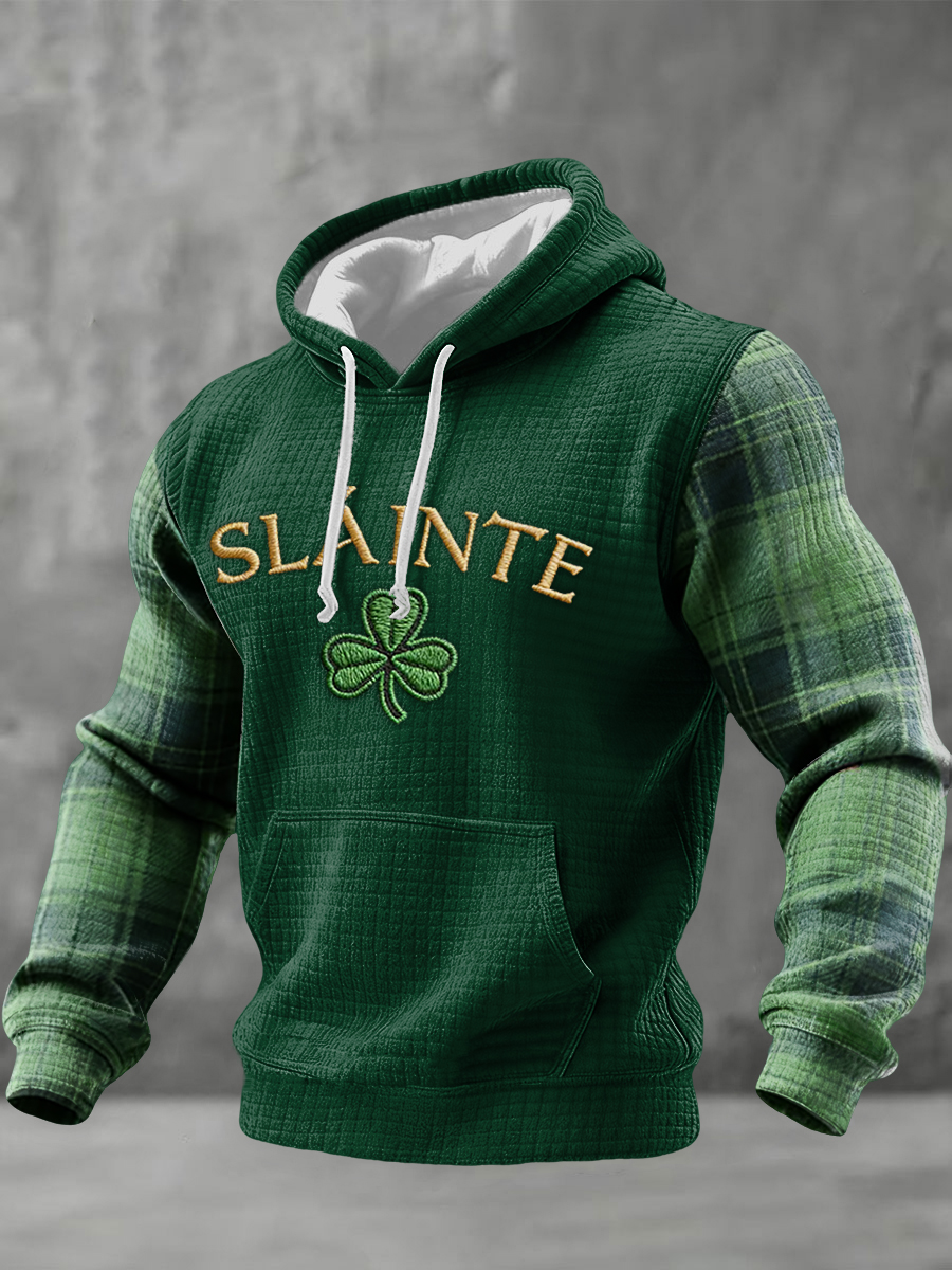 Men's St. Patrick's Day Shamrock Print Checkered Cotton Hoodie