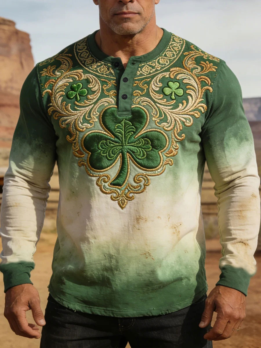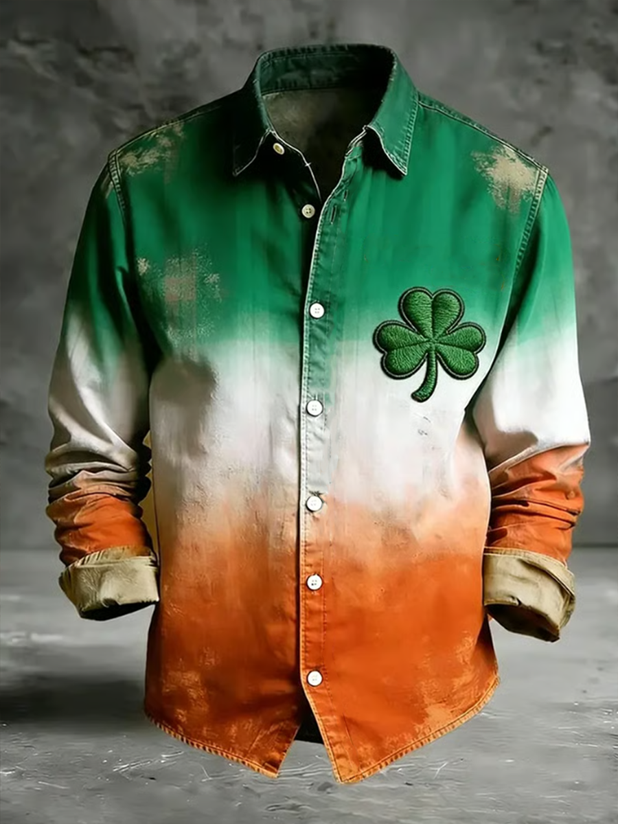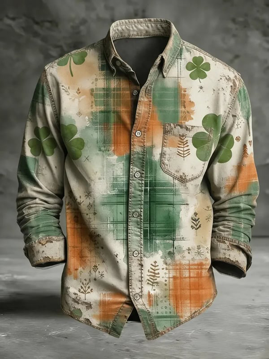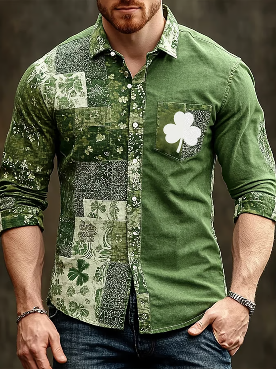Men's St. Patrick's Day Shamrock Print Long-sleeve Shirt