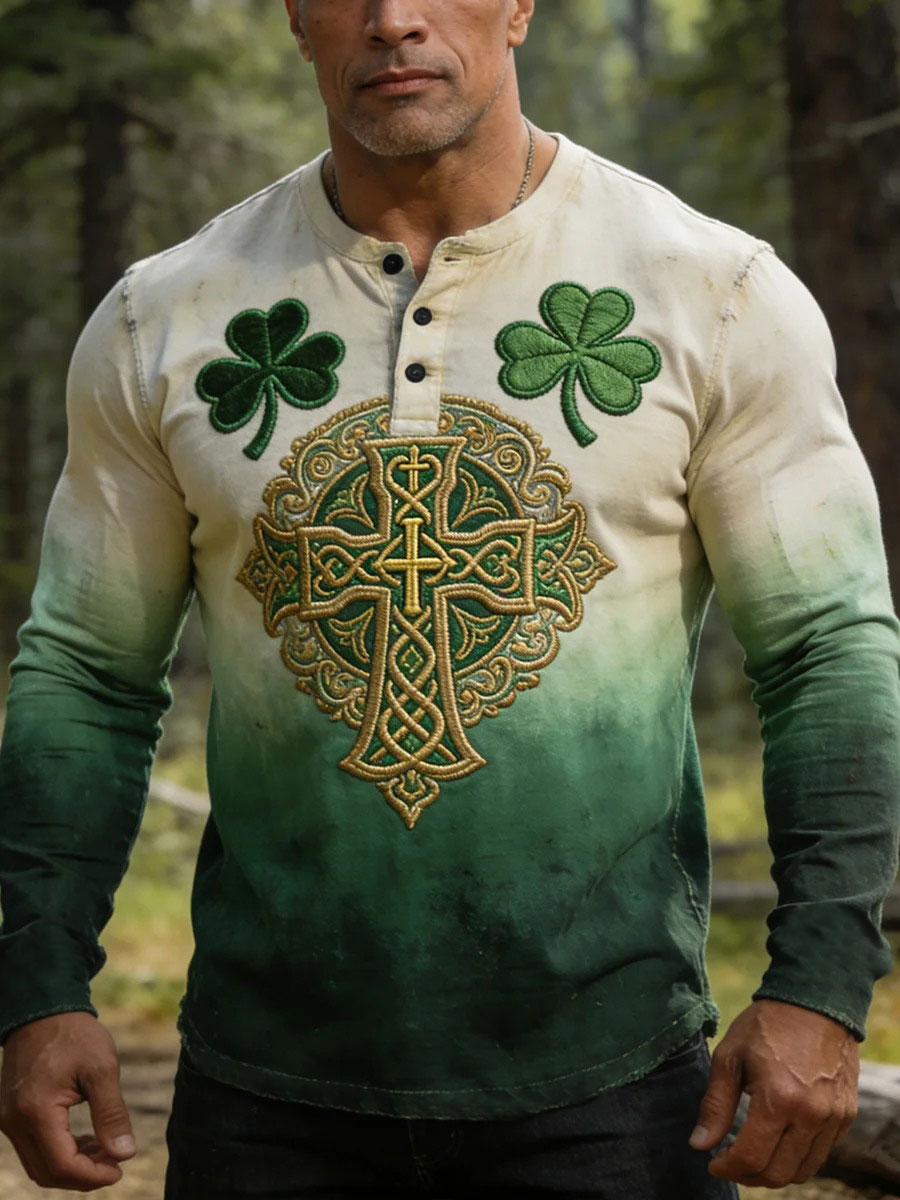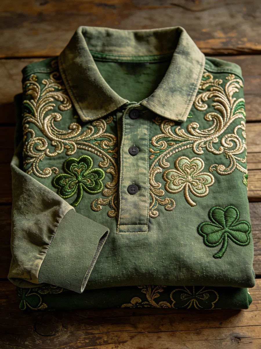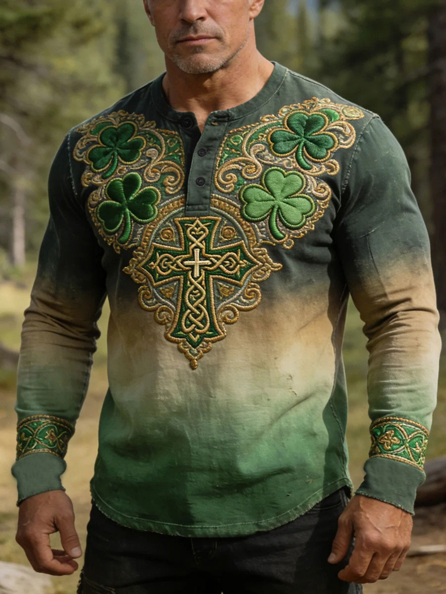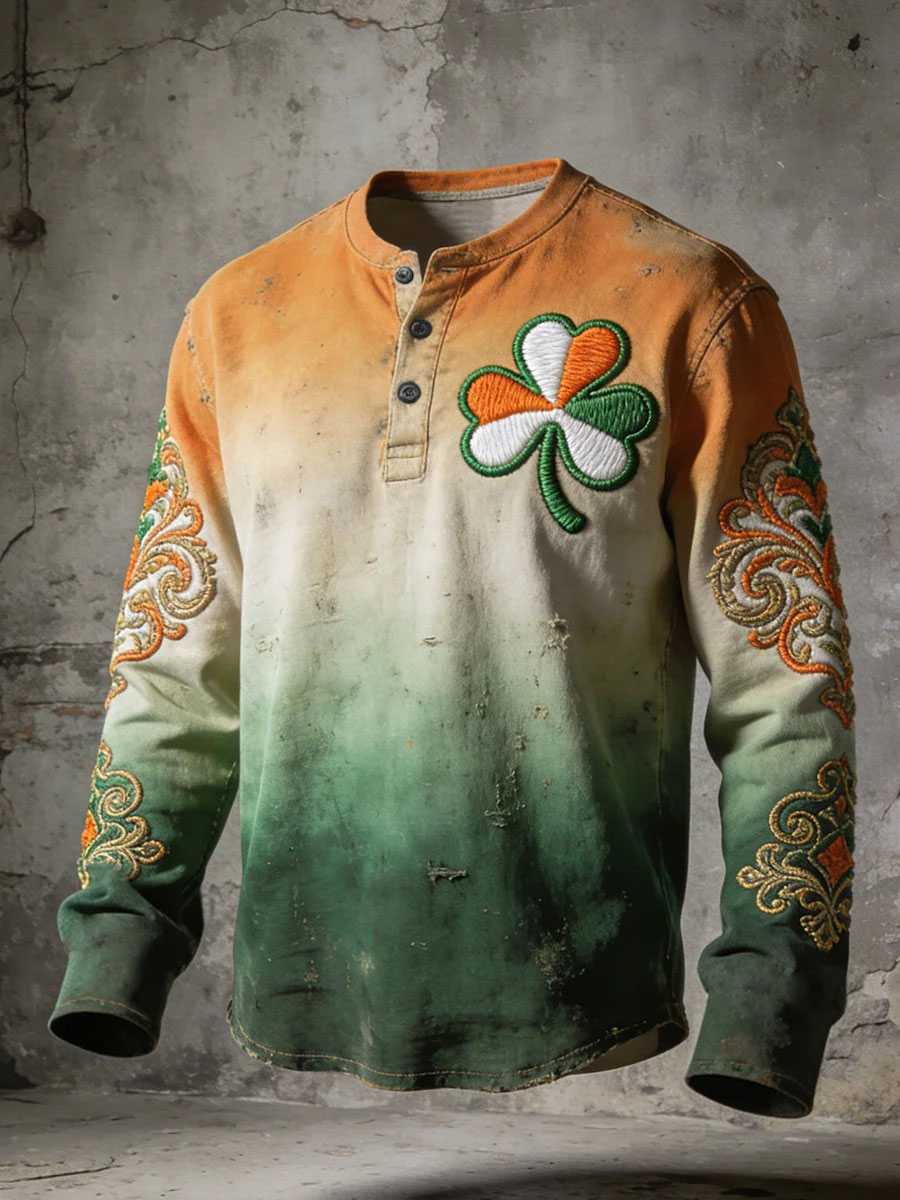 Men's St. Patrick's Day Shamrock Print Long-sleeve Shirt
