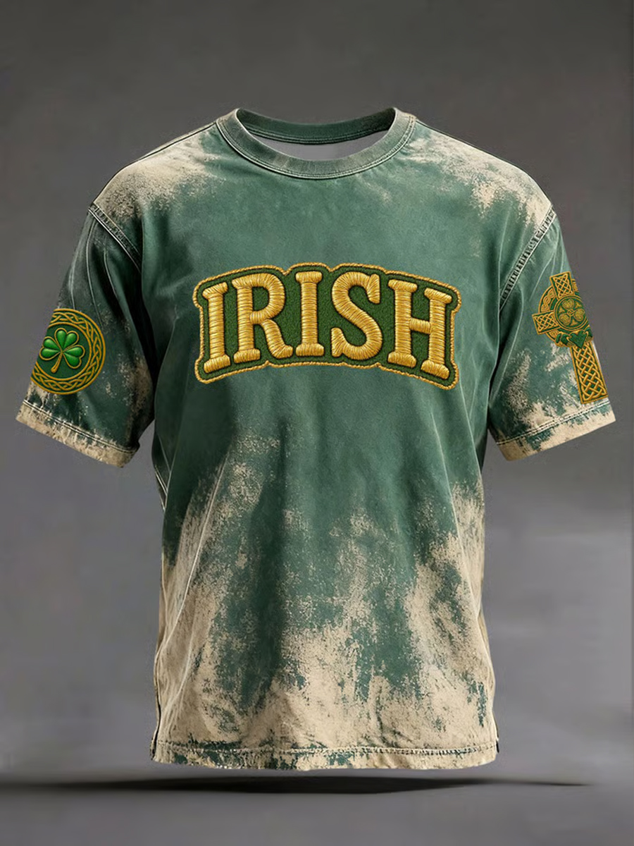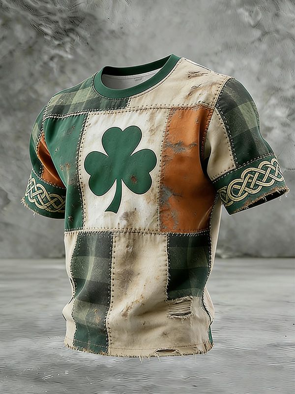 Men's Vintage St. Patrick's Day Shamrock Art Printed Short-Sleeve T-Shirt