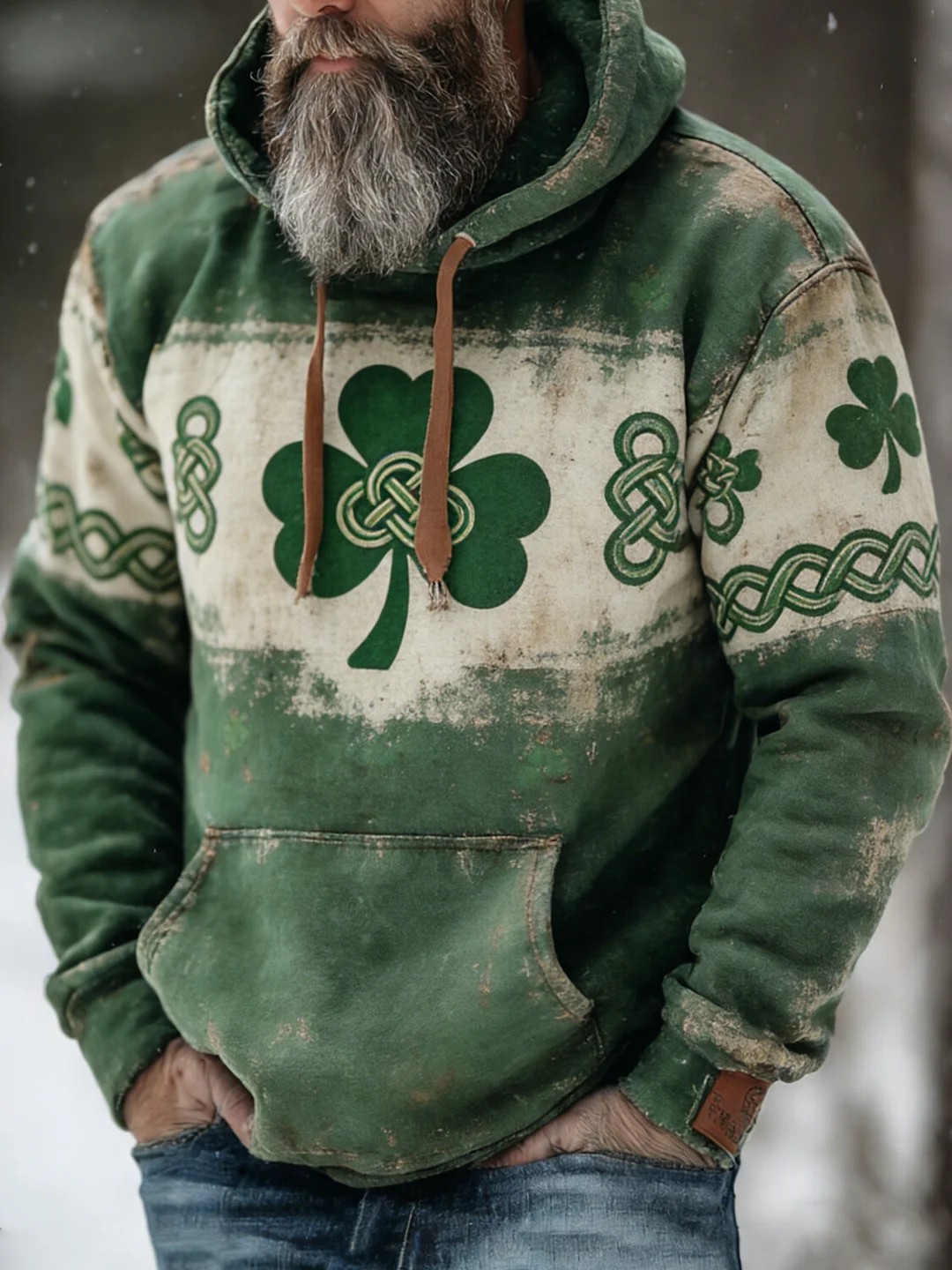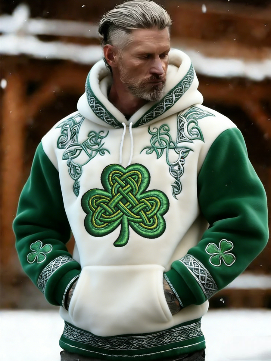 Men's St. Patrick's Day Celtic Knot Shamrock Print Casual Flannel Hoodie