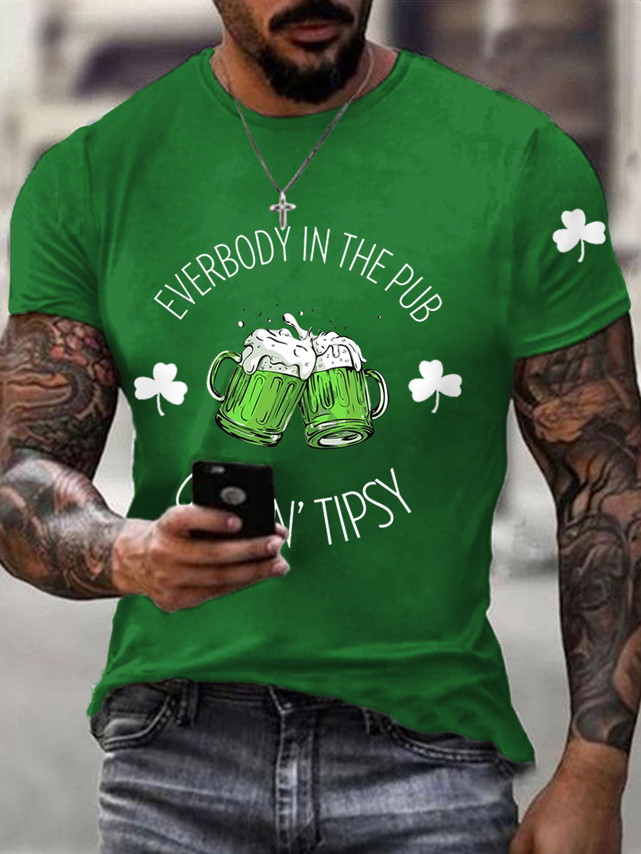 Men's St. Patrick's Day Everybody In The Pub Gettin Tipsy Shamrock Print Tee